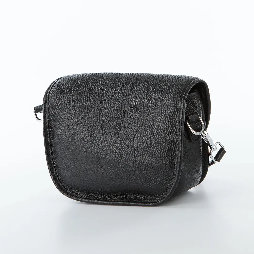 Сумка от торговой марки Poshete из натуральной кожи черного цвета. Модель со съемным регулируемым плечевым ремнем. Закрывается клапаном на поворотном замке. Отделение на молнии. Внутри: текстильная подкладка, карман на молнии, накладной карман.