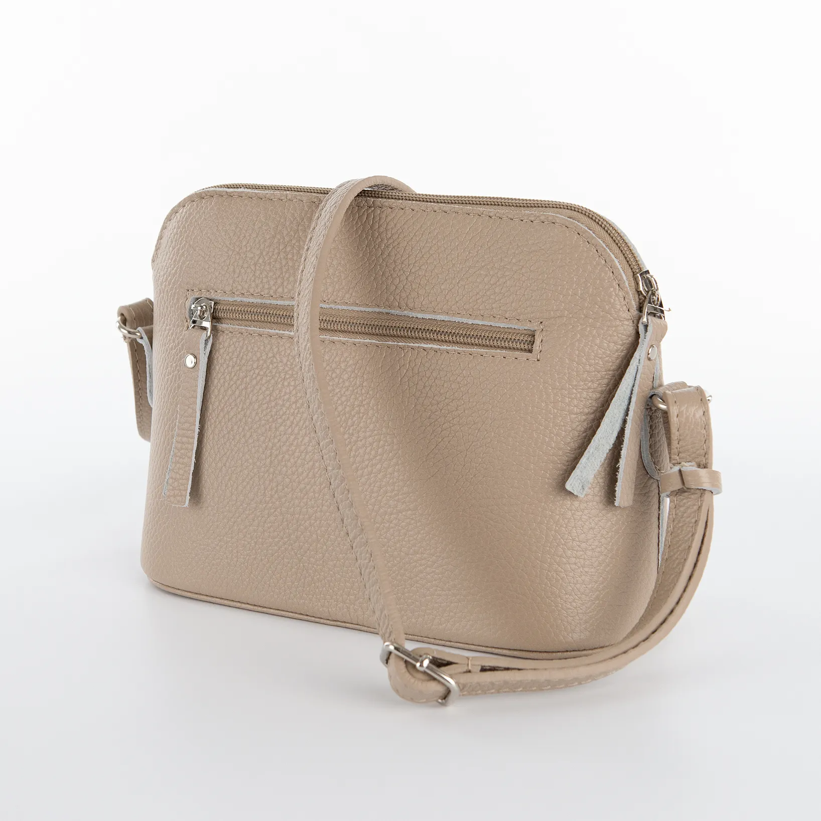 Сумка от торговой марки Francesco Molinary из натуральной зернистой кожи кофейного цвета. Модель с несъемным регулируемым плечевым ремнем. Отделение на молнии. Внутри: фирменная подкладка, карман на молнии, накладной карман. На задней стороне – карман на молнии.
