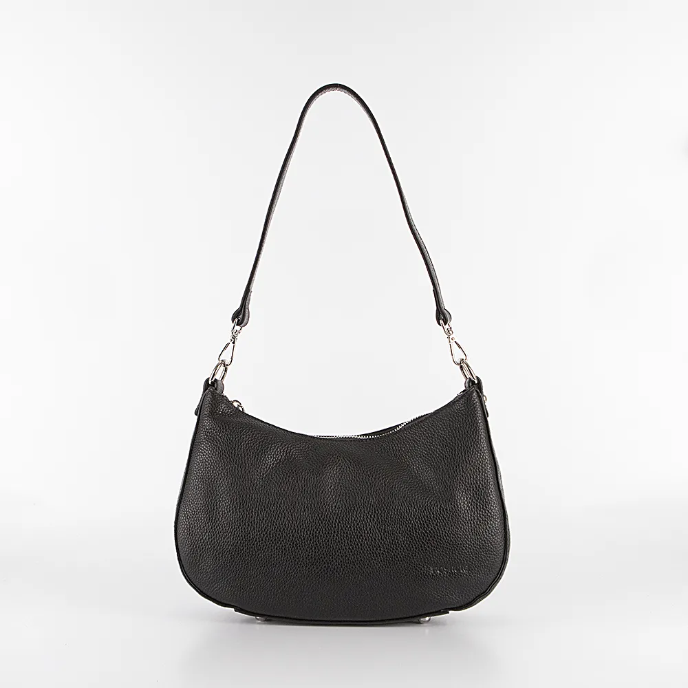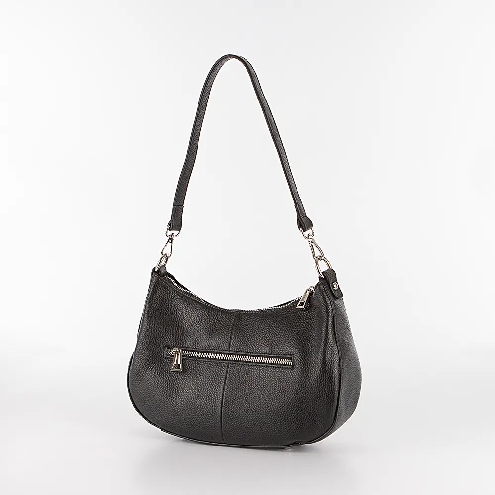 Сумка от торговой марки Poshete из натуральной кожи черного цвета. Модель со съемным регулируемым плечевым ремнем. Клапан на двух магнитных кнопках закрывает карман на молнии и отделение на молнии. В отделении: средник и карман на молнии, два накладных кармана. На задней стороне – карман на молнии. Дно оснащено металлическими ножами для защиты от износа.
