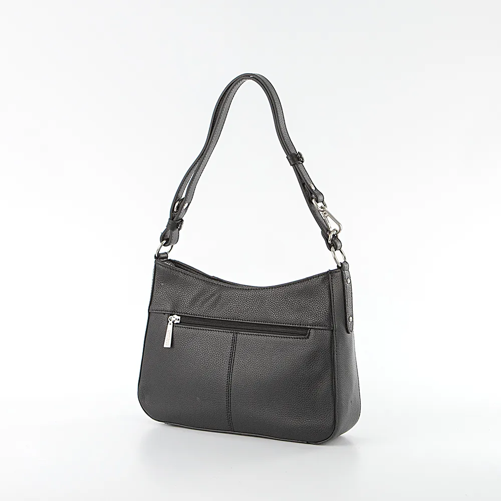 Сумка от торговой марки Francesco Molinary выполнена из натуральной кожи черного цвета. Модель с удлиненной регулируемой ручкой-ремнем. Отделение на молнии. Внутри: фирменная подкладка, средник и карман на молнии, два накладных кармана. На задней стороне – карман на молнии.