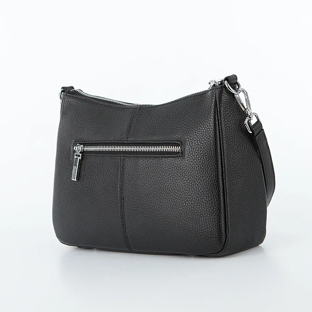 Сумка от торговой марки Francesco Molinary из натуральной кожи черного цвета. Модель со съемной ручкой и съемным регулируемым плечевым ремнем. Отделение на молнии. Внутри: фирменная подкладка, средник и карман на молнии, накладной карман. На лицевой стороне – два кармана на молнии. На задней стороне – карман на молнии. Дно сумки оснащено металлическими ножками для защиты от износа.