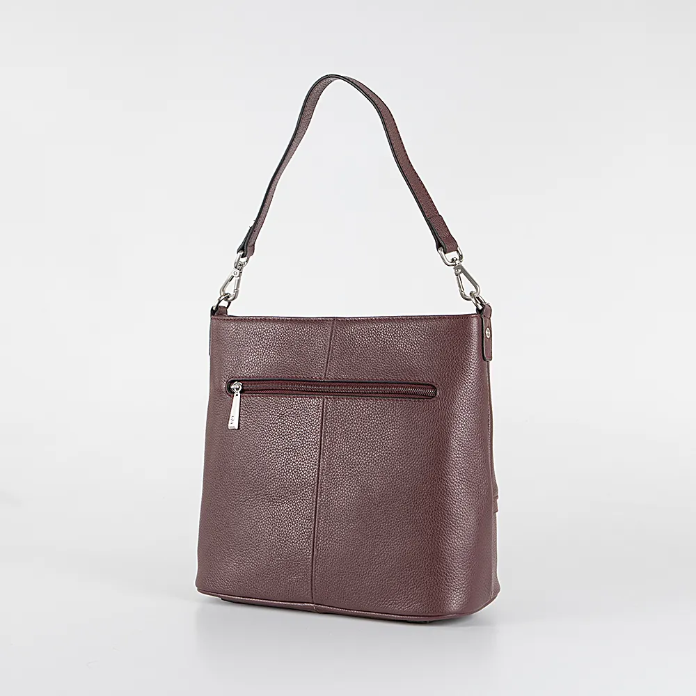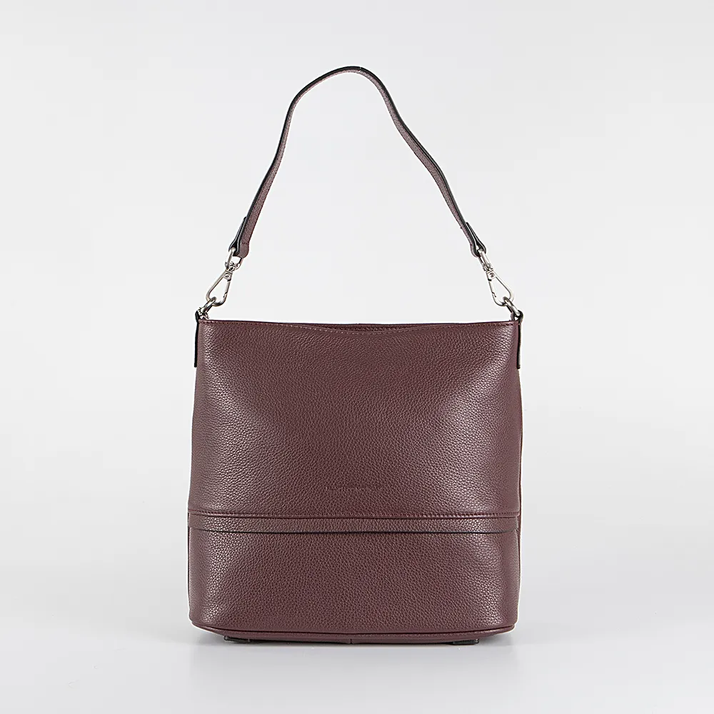 Сумка от торговой марки Francesco Molinary из натуральной кожи бордового цвета. Модель со съемной ручкой и съемным регулируемым плечевым ремнем. Отделение на молнии. Внутри: фирменная подкладка, средник и карман на молнии, накладной карман. На задней стенке – карман на молнии. На дне имеются нашивки для защиты от износа.