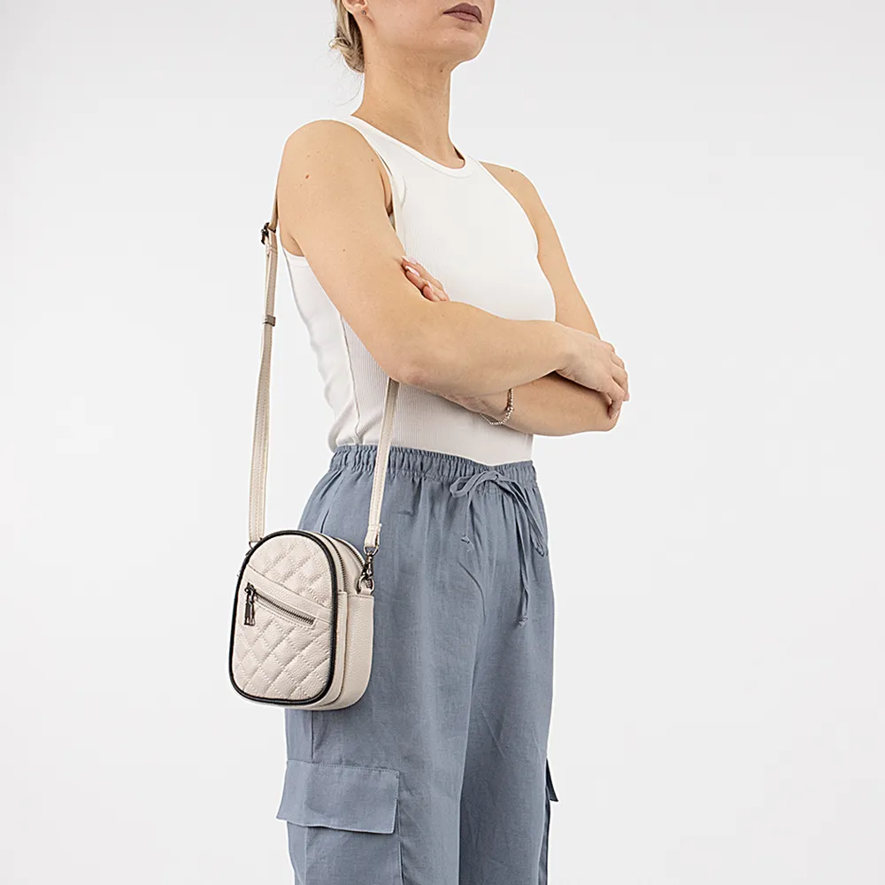 Сумка от торговой марки Poshete из натуральной кожи яркой расцветки в оттенках кофейного и коричневого цвета. Модель с широким съемным регулируемым плечевым ремнем, выполненным из текстильного материала. Отделение на молнии. Внутри: фирменная подкладка, карман на молнии, накладной карман. На лицевой стороне – накладной карман на магнитной кнопке. На задней стороне – карман на молнии.