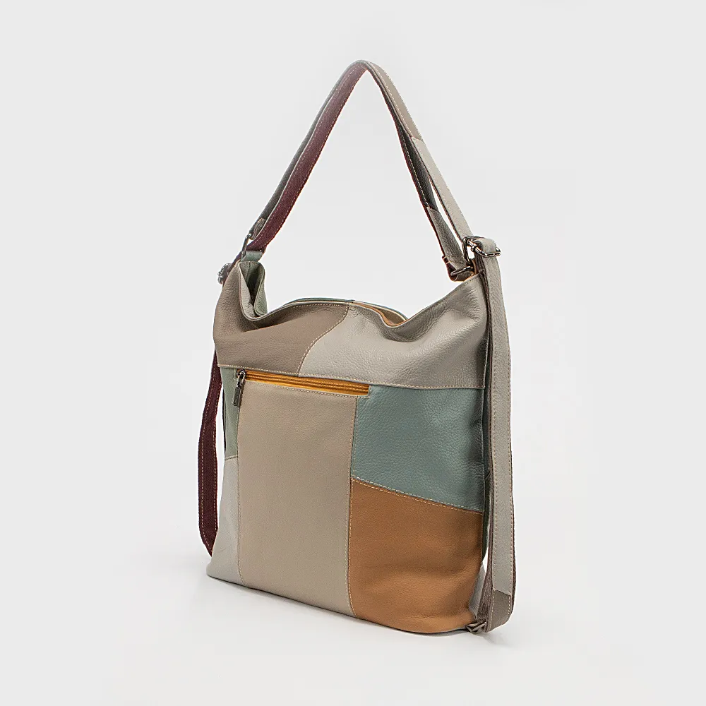 Сумка-рюкзак от торговой марки Poshete из натуральной кожи с контрастными вставками. Вместительная модель с двумя ручками, которые стягиваются в плечевые лямки. Отделение на молнии. Внутри: средник и карман на молнии, два накладных кармана. На лицевой и задней сторонах - карман на молнии.