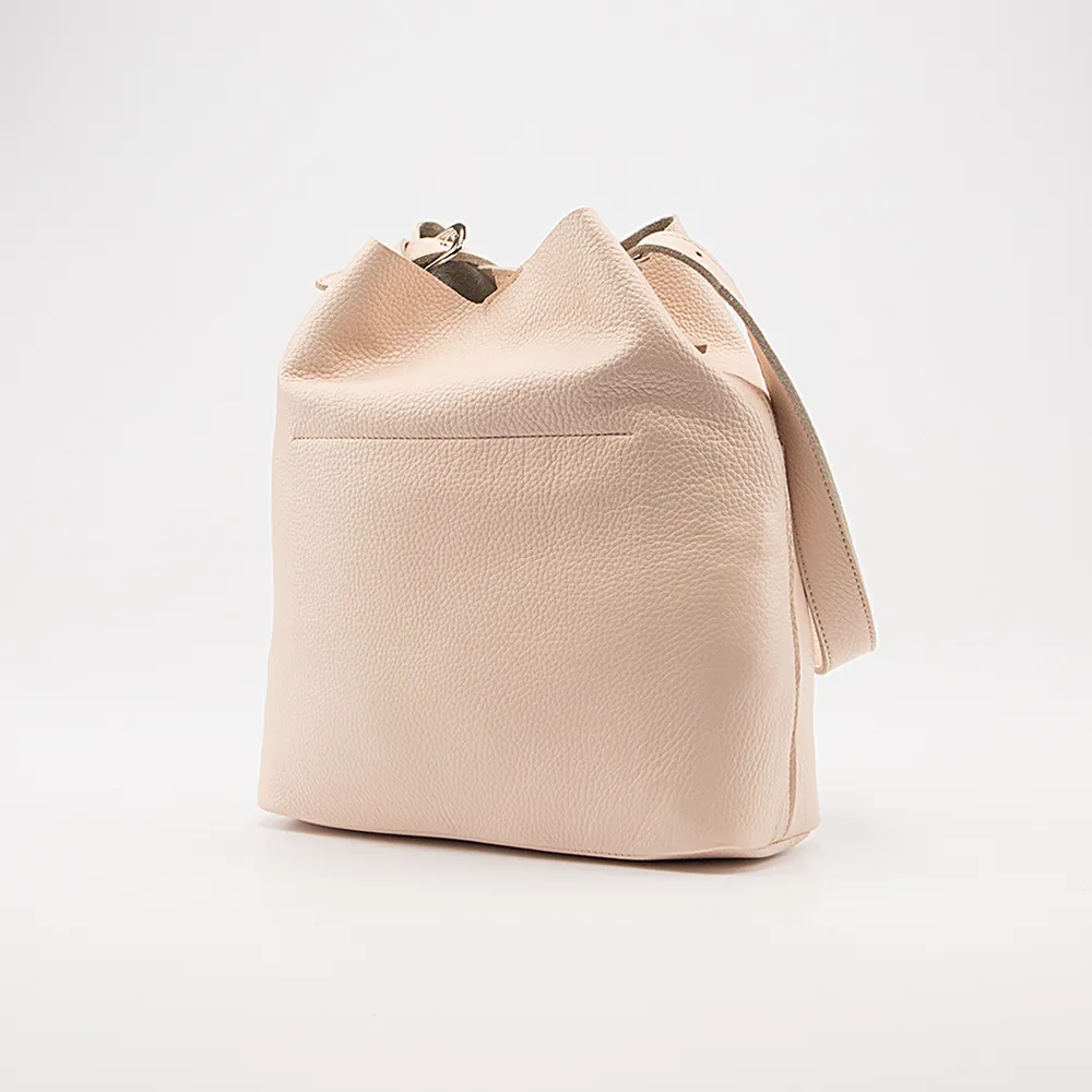Сумка от торговой марки Francesco Molinary из натуральной кожи нежно-розового цвета. Модель вертикальной ориентации с широким регулируемым плечевым ремнем. Отделение фиксируется магнитной кнопкой. Внутри: без подкладки, накладной кожаный карман на молнии. На лицевой стороне – два накладных кармана.