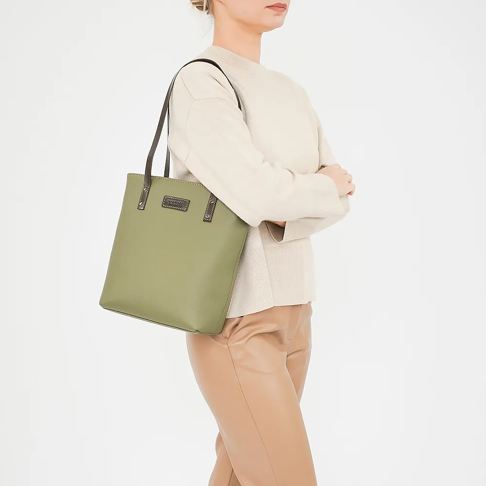 Сумка от торговой марки Poshete из натуральной кожи. Вместительная модель вертикальной ориентации, с двумя удлиненными ручками. Глубокое отделение на молнии. Внутри: фирменная подкладка, карман на молнии, два накладных кармана. На задней стороне – карман на молнии.