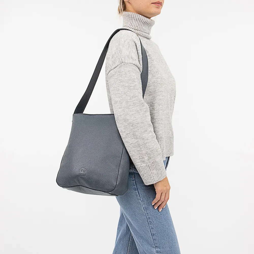 Сумка от торговой марки Francesco Molinary из натуральной кожи синего цвета. Модель вертикальной ориентации с широким несъемным регулируемым плечевым ремнем. Отделение на молнии. Внутри: без подкладки, накладной кожаный карман на молнии.