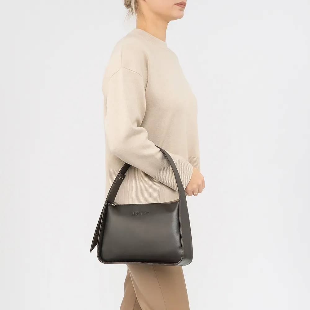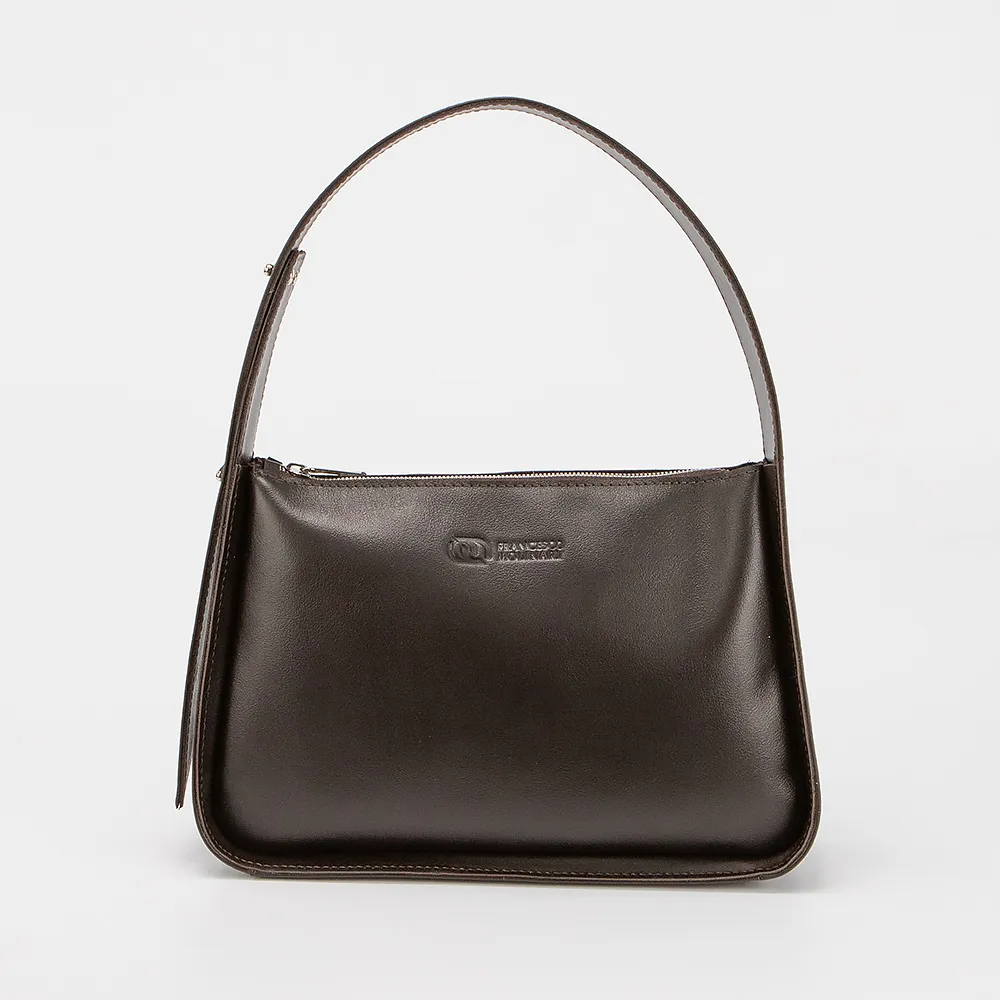 Сумка от торговой марки Francesco Molinary из натуральной кожи коричневого цвета. Модель с регулируемой ручкой с кобурными кнопками. Отделение на молнии. Внутри: фирменная подкладка, накладной карман.