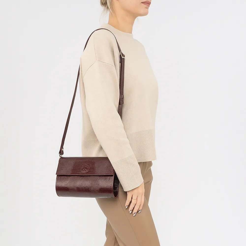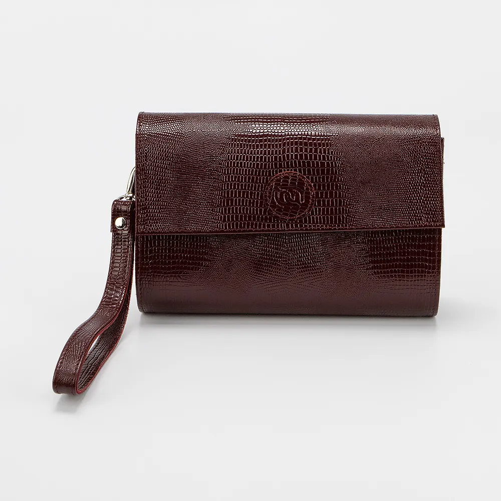 Сумка от торговой марки Francesco Molinary из натуральной кожи черного цвета с тиснением под рептилию. Модель со съемным ремешком для запястья и съемным регулируемым плечевым ремнем. Закрывается клапаном на магнитной кнопке. Внутри: фирменная подкладка, карман на молнии.