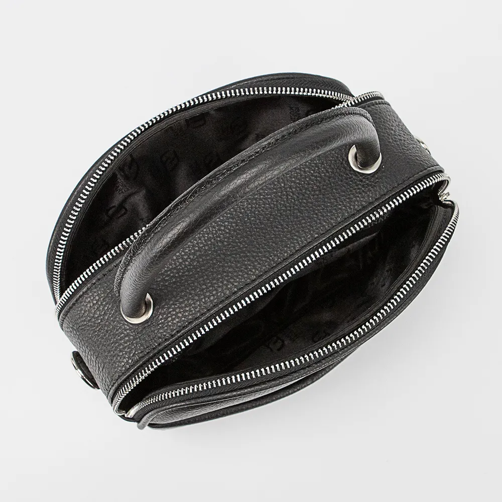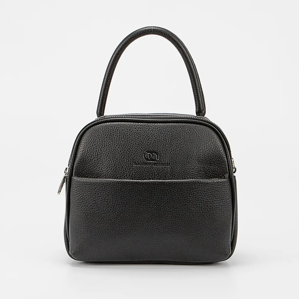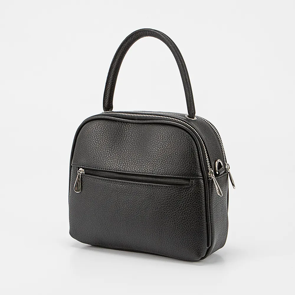 Сумка от торговой марки Francesco Molinary из натуральной кожи черного цвета. Модель с удлиненной плотной ручкой и съемным регулируемым плечевым ремнем. Два отделения на молнии, с фирменной подкладкой. На задней стороне – карман на молнии.