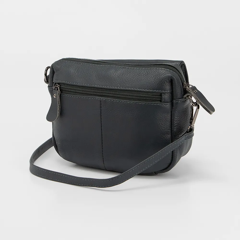 Сумка от торговой марки Poshete из натуральной кожи темно-синего цвета. Модель со съемным регулируемым плечевым ремнем. Отделение на молнии. Внутри: текстильная подкладка, карман на молнии. На лицевой стороне - накладной карман с клапаном. На задней стороне - карман на молнии.