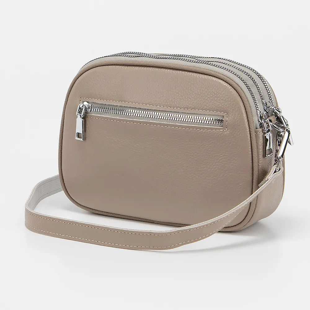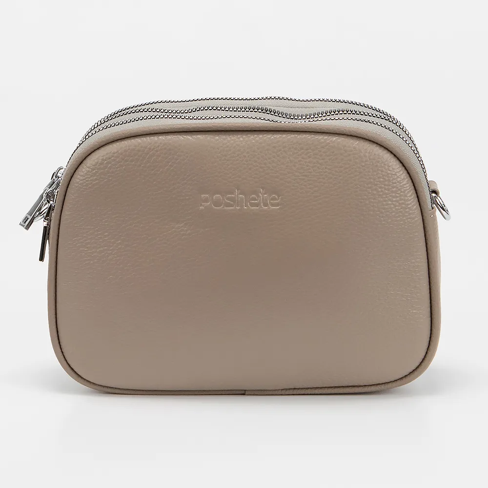 Сумка от торговой марки Poshete из натуральной кожи кофейного цвета. Модель с длинным регулируемым плечевым ремнем. Три отделения на молнии, с фирменной подкладкой. В заднем - карман на молнии, в переднем - накладной карман. На задней стороне - карман на молнии.