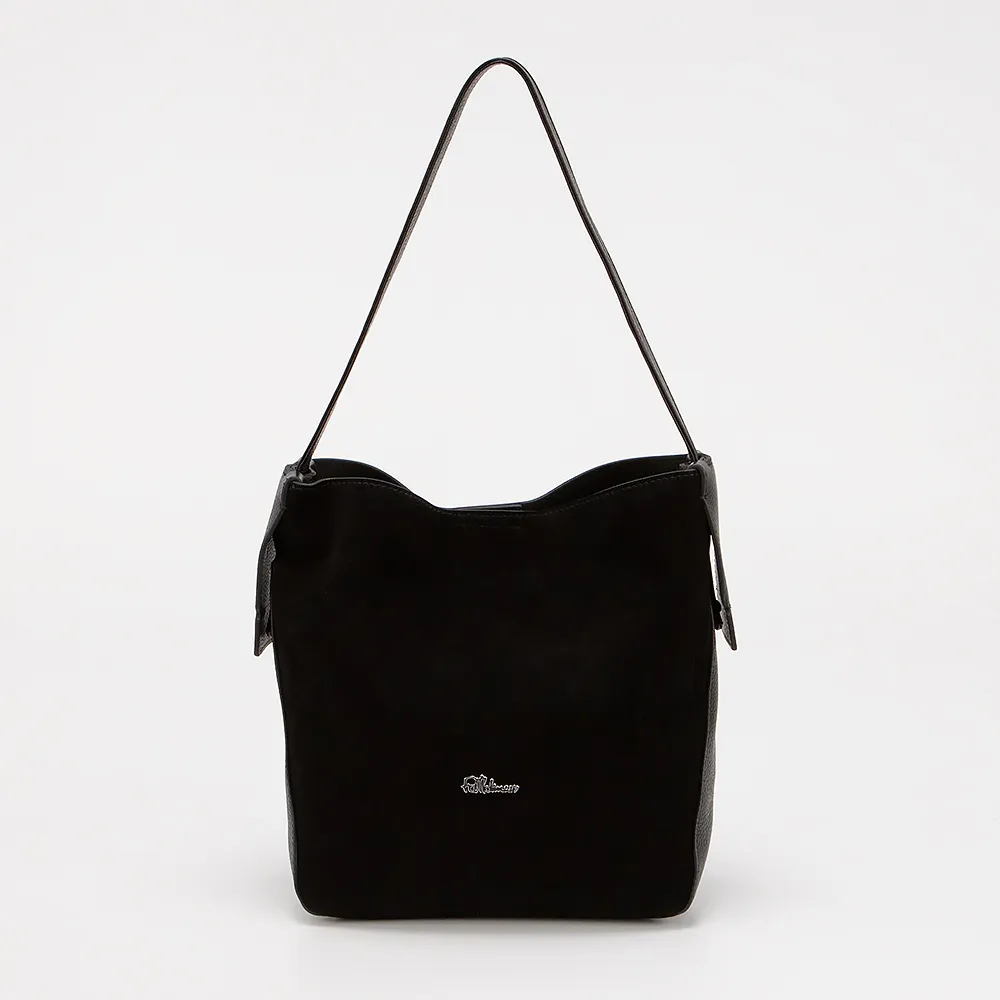 Сумка от торговой марки Francesco Molinary выполнена из натуральной кожи и замши черного цвета. Модель с длинной ручкой и съемным плечевым ремнем. Отделение на магнитной кнопке. Внутри: без подкладки, имеется вкладыш на молнии из текстильного материала.