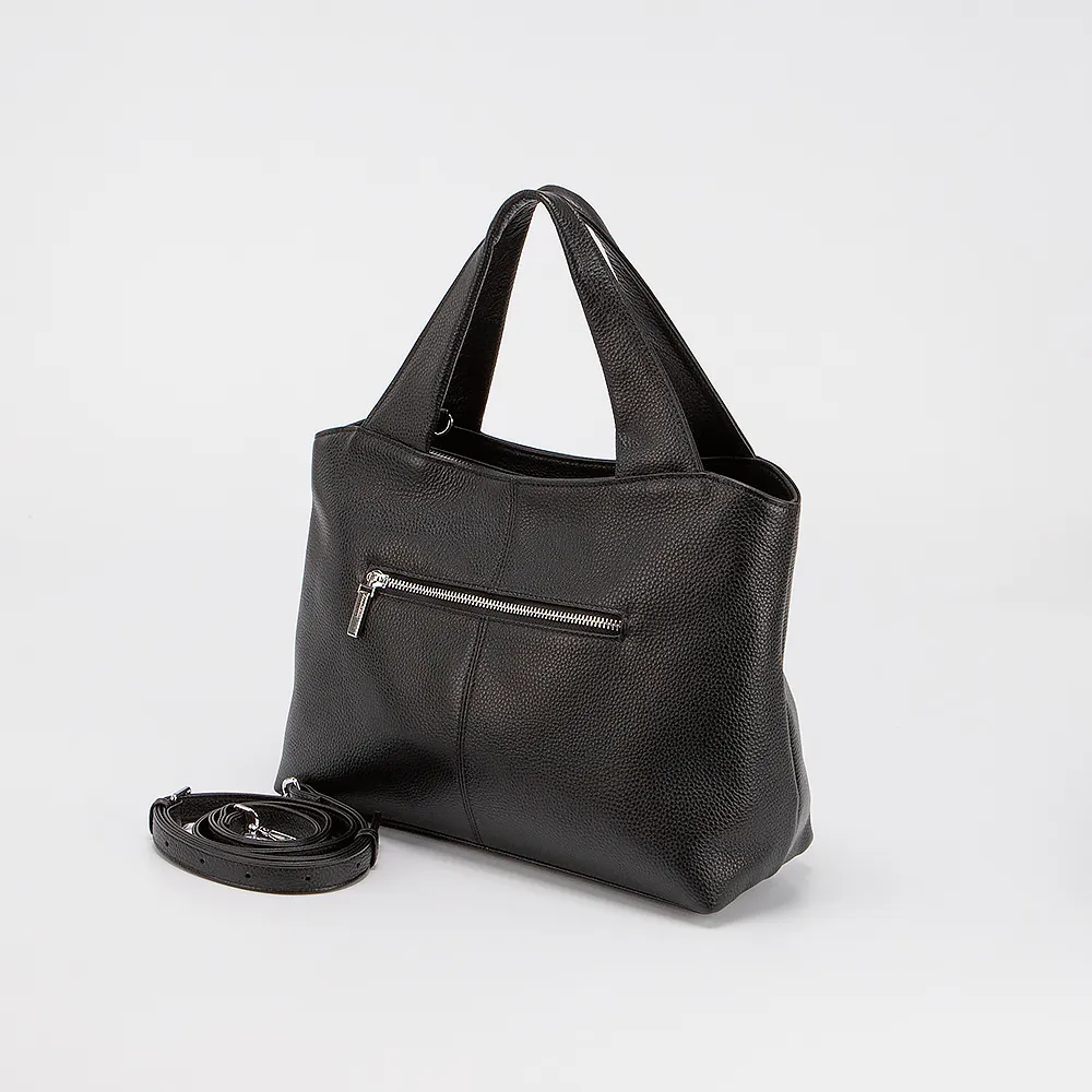Сумка от торговой марки Francesco Molinary выполнена из натуральной кожи черного цвета. Модель с двумя широкими ручками и длинным регулируемым плечевым ремнем. Отделение на молнии. Внутри: текстильная покладка, карман на молнии, накладной карман. Дно оснащено металлическими ножками для защиты от износа.