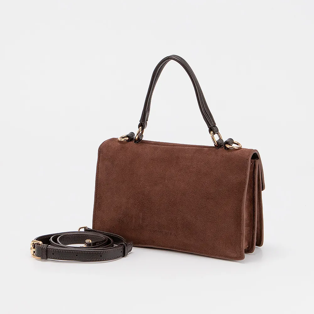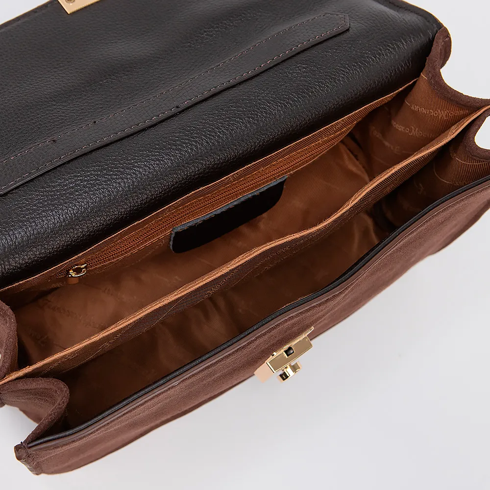 Сумка от торговой марки Francesco Molinary выполнена из натуральной замши коричневого цвета. Модель с одной ручкой и съемным регулируемым плечевым ремнем. Клапан закрывает отделение с фирменной текстильной подкладкой. Внутри: карман на молнии, накладной карман, плотный средник.