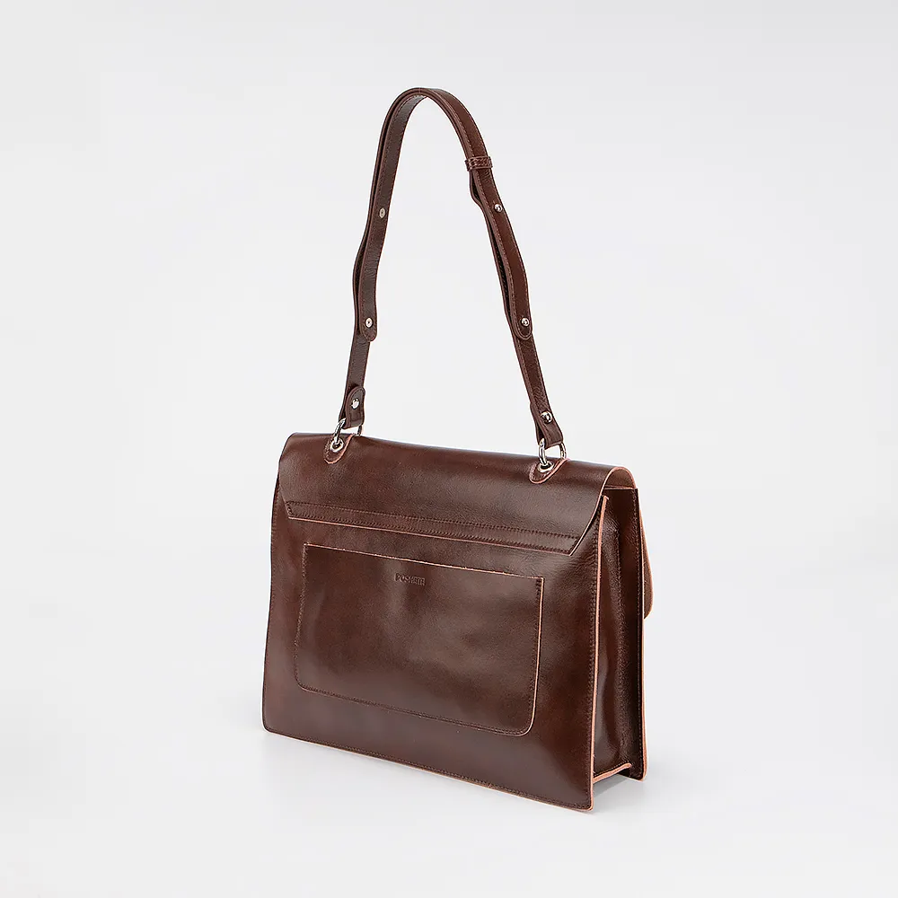 Сумка от торговой марки Poshete выполнена из натуральной кожи коричневого цвета. Модель с длинной регулируемой ручкой. Клапан закрывает отделение на молнии. Внутри: частичная текстильная подкладка, карман на молнии. На задней стороне - накладной карман.