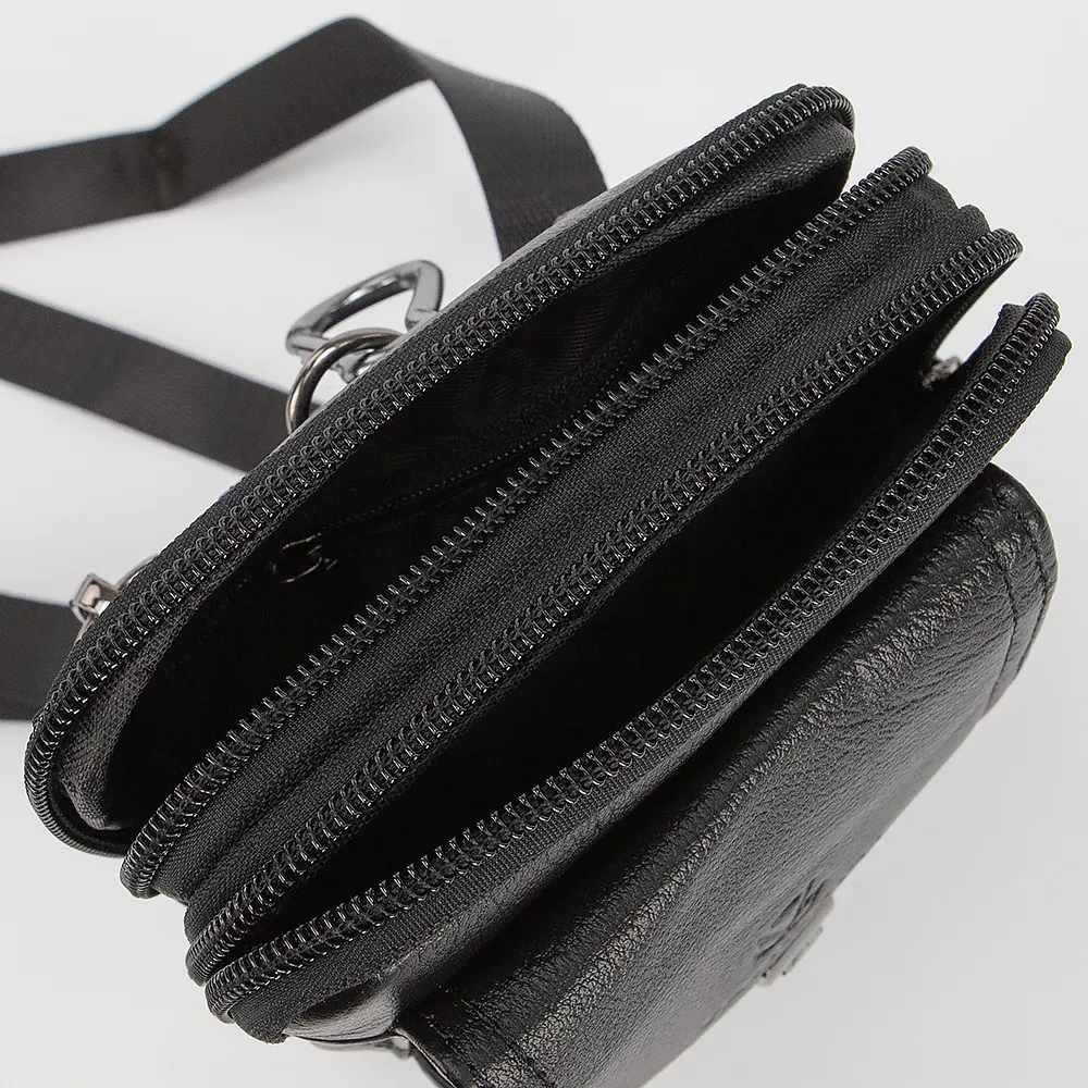 Сумка-планшет от торговой марки Valigetti выполнена из натуральной кожи черного цвета. Модель вертикальной ориентации со съемным регулируемым плечевым ремнем. Два отделения на молнии. С лицевой стороны карман с клапаном. С задней стороны карабин и лямка для крепления на поясной ремень.