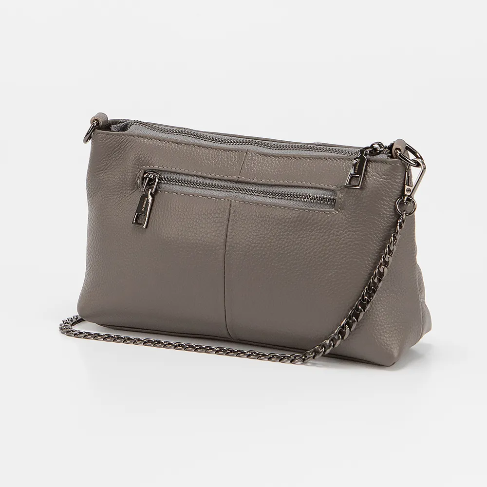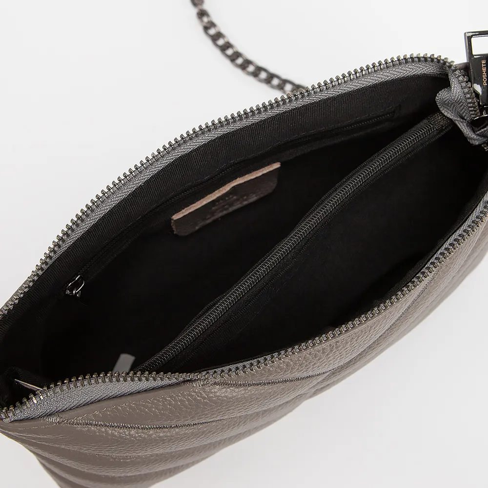 Сумка от торговой марки Poshete выполнена из натуральной кожи кофейного цвета. Миниатюрная модель со съемным ремнем-цепочкой. Декорирована стежкой. Отделение на молнии. Внутри: текстильная подкладка, карман и средник на молнии, наклданой карман. На задней стороне - карман на молнии.