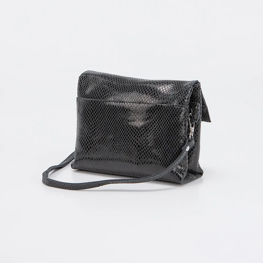 Сумка от торговой марки Poshete выполнена из натуральной кожи серого цвета с лазерной обработкой и тиснением под рептилию. Модель с длинным регулируемым плечевым ремнем. Клапан закрывает два отделения на молнии. Внутри: текстильная подкладка, карман на молнии, накладной карман.