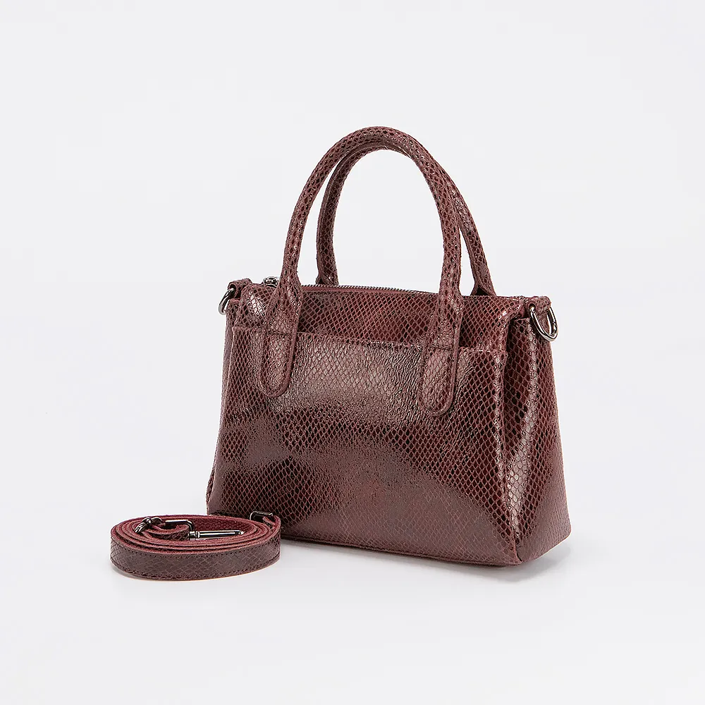 Сумка от торговой марки Poshete выполнена из натуральной кожи коричневого цвета с лазерной обработкой. Модель с двумя ручками и съемным регулируемым плечевым ремнем. Отделение на молнии. Внутри: три отсека, средний - на молнии, текстильная подкладка, карман на молнии, накладной карман.