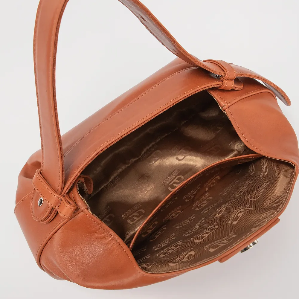 Сумка от торговой марки Francesco Molinary из натуральной кожи коричневого цвета. Оригинальная модель с одной ручкой и съемным регулируемым плечевым ремнем. Отделение на магнитной кнопке. Внутри: фирменная подкладка, карман на молнии, накладной карман.