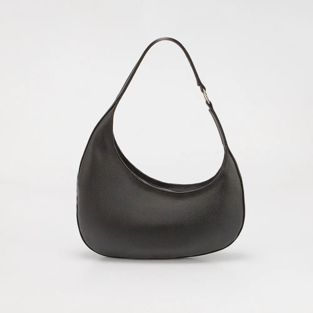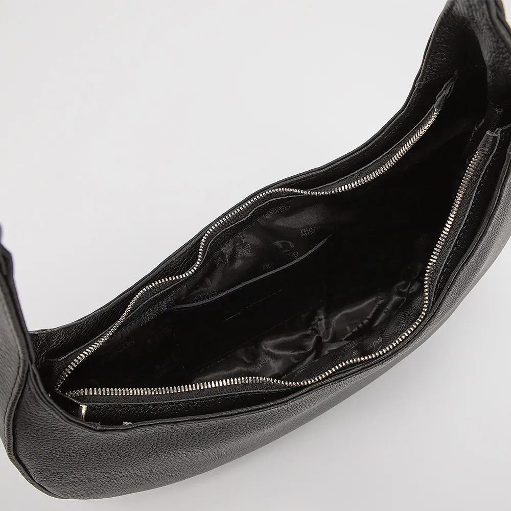 Сумка от торговой марки Francesco Molinary выполнена из натуральной кожи черного цвета. Модель асимметричной формы с удлиненной ручкой. Отделение на молнии. Внутри: фирменная подкладка, карман на молнии, накладной карман.