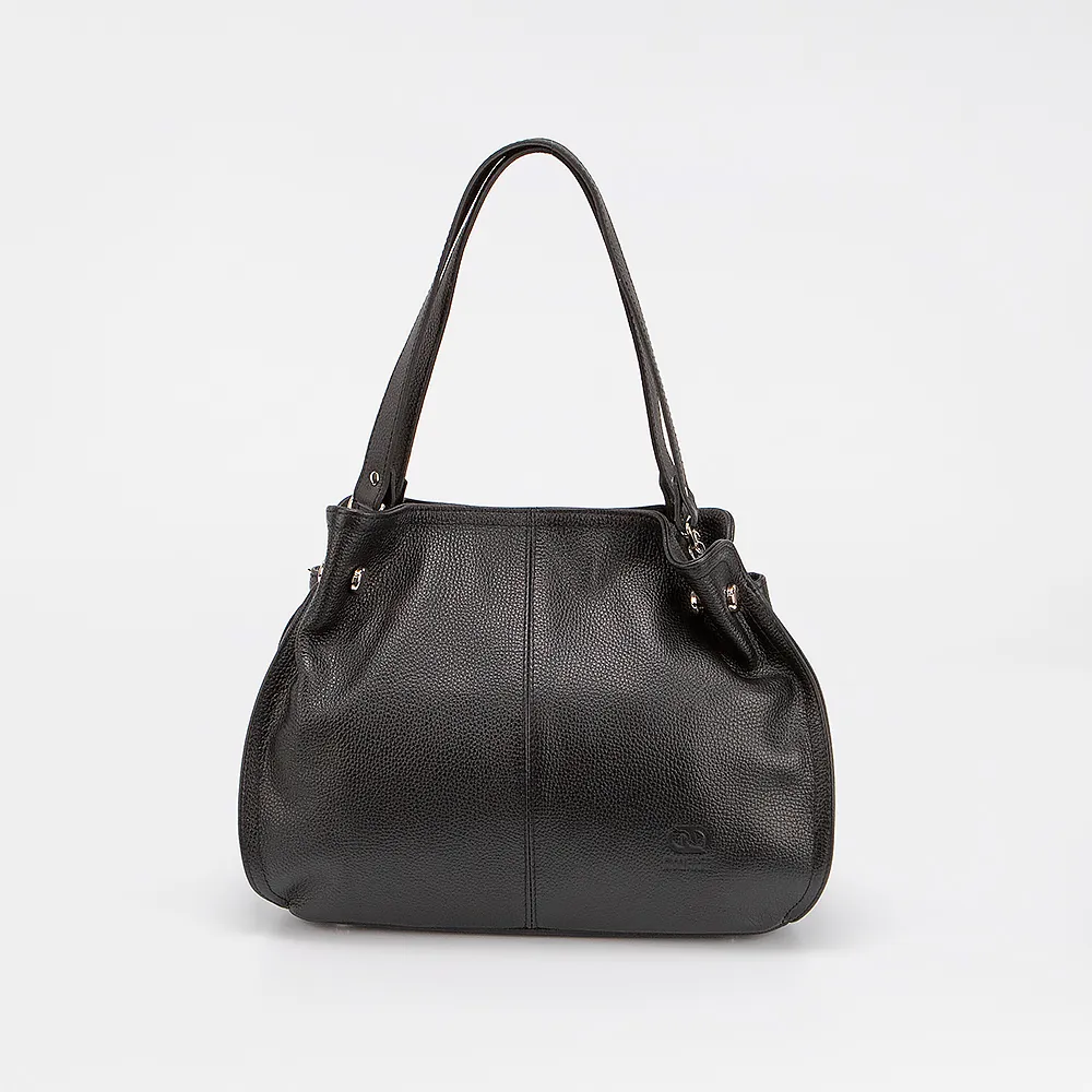 Сумка от торговой марки Francesco Molinary выполнена из натуральной кожи черного цвета. Модель с двумя ручками. Отделение на молнии. Внутри: фирменная текстильная подкладка, карман и средник на молнии, накладной карман. На задней стороне - карман на молнии.