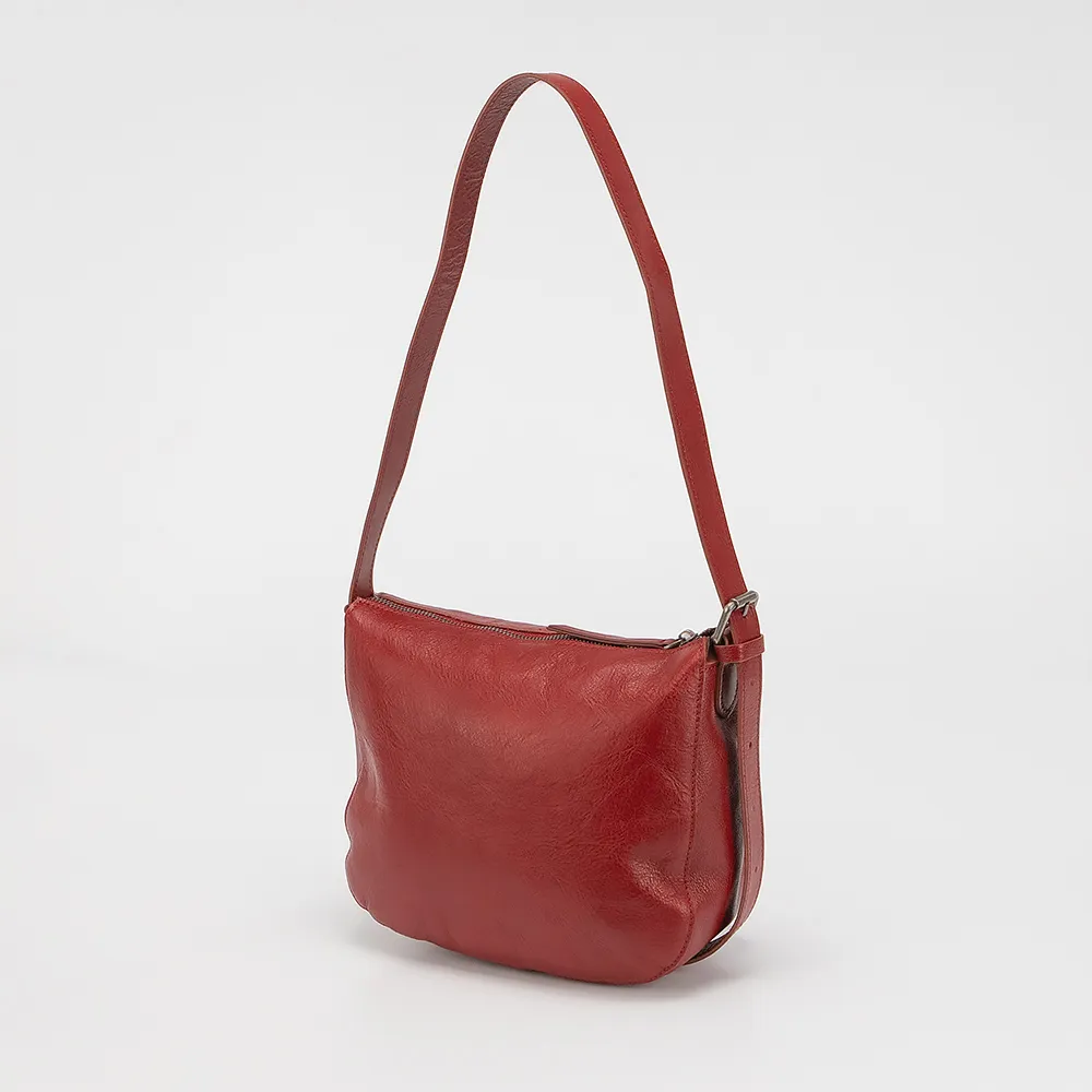 Сумка от торговой марки Francesco Molinary выполнена из натуральной кожи красного цвета. Модель с несъемным регулируемым плечевым ремнем. Отделение на молнии. Внутри: текстильная подкладка, карман и средник на молнии, накладной карман.