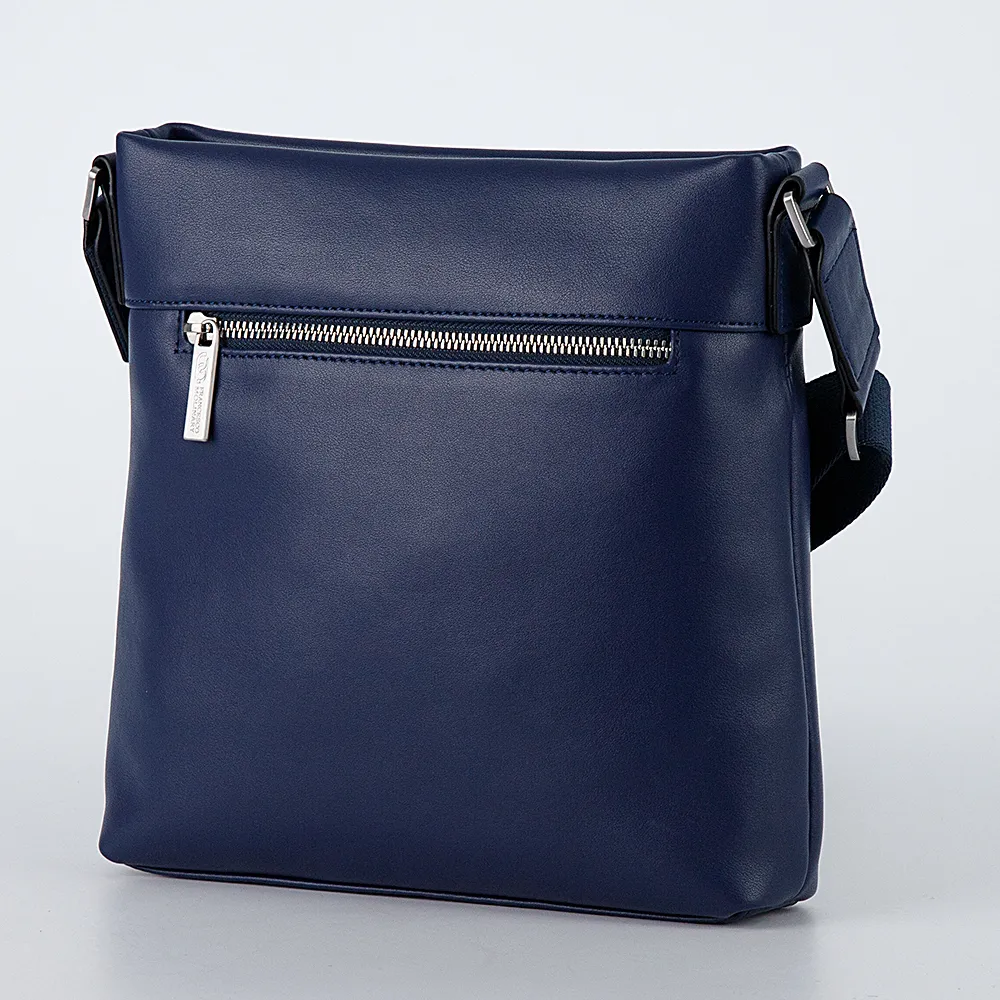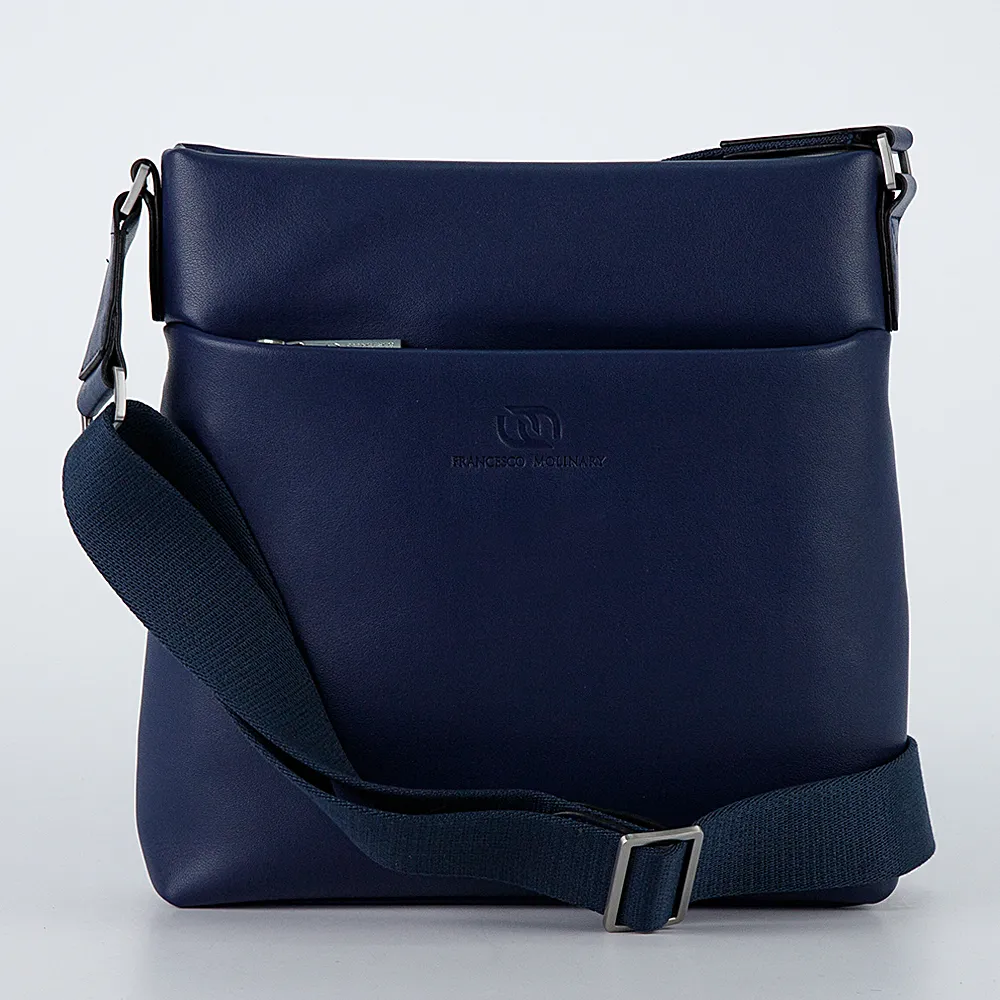 Сумка-планшет от торговой марки Francesco Molinary из натуральной кожи синего цвета. Модель вертикальной ориентации с несъемным регу лируемым плечевым ремнем из текстильного материала. Отделение на молнии. Внутри: фирменная подкладка, карман на молнии два накладных кармана. На лицевой и задней сторонах – карман на молнии.