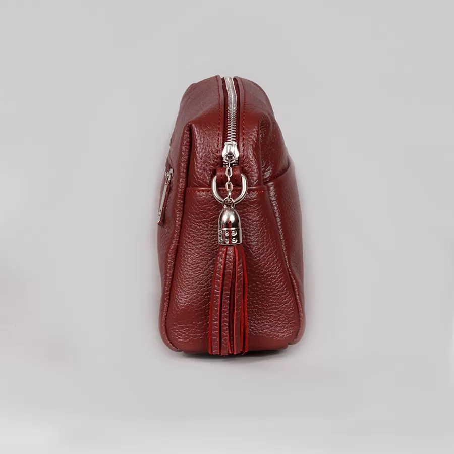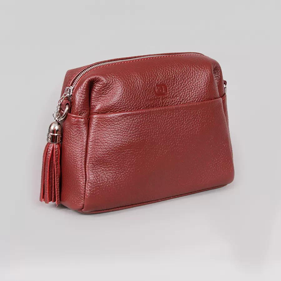 - Основное отделение на молнии. Язычок выполнен в виде кисточки.