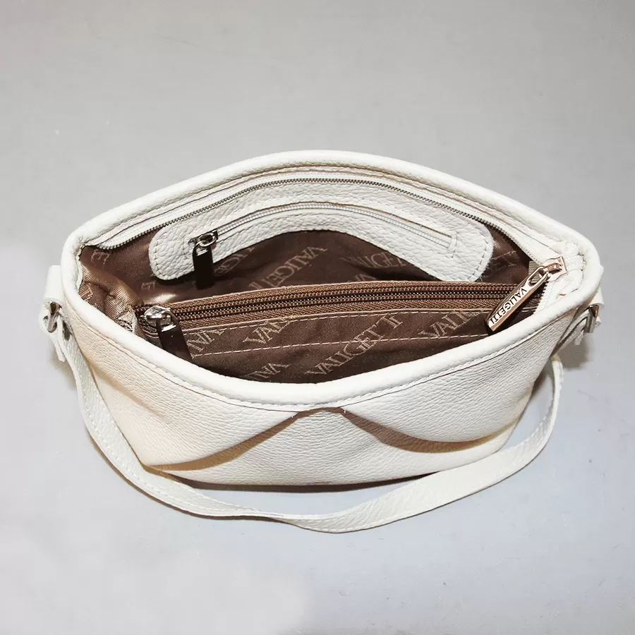 Сумка Valigetti выполнена из натуральной кожи в белом цвете. Прочная молния надёжно закрывает её.