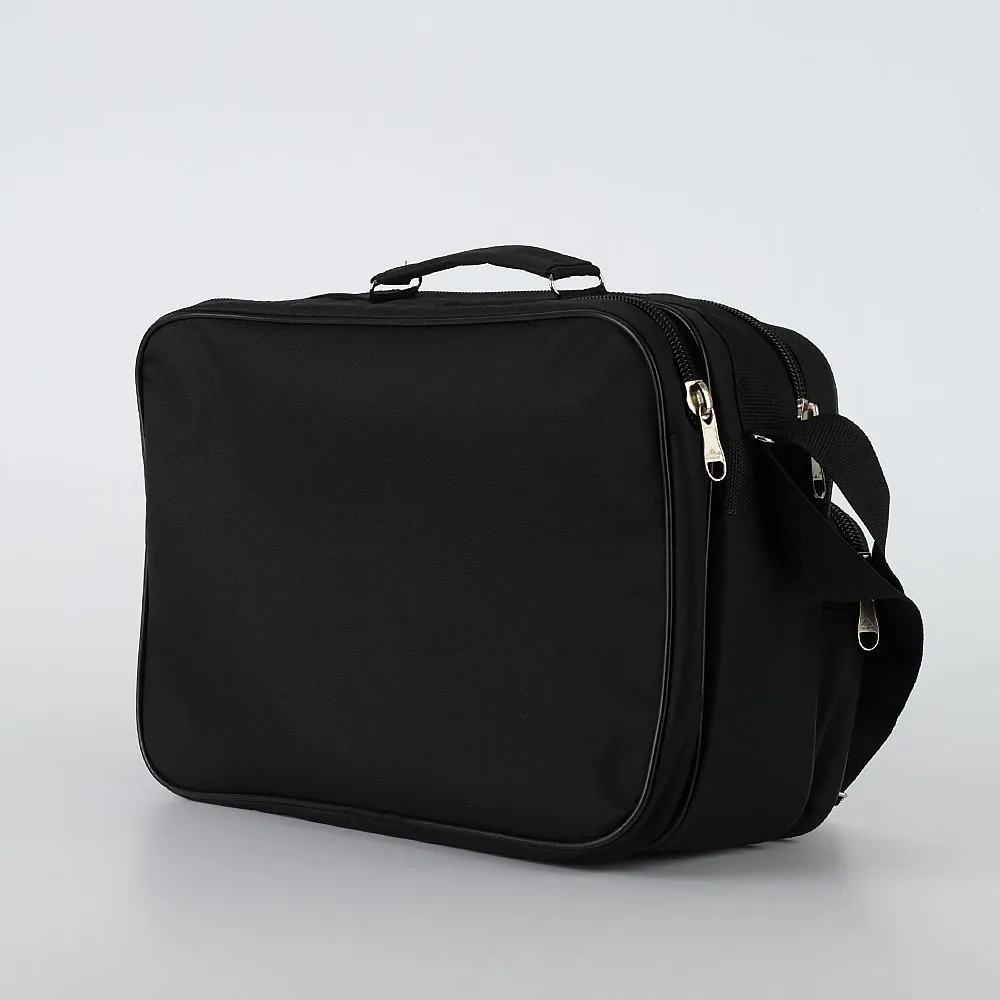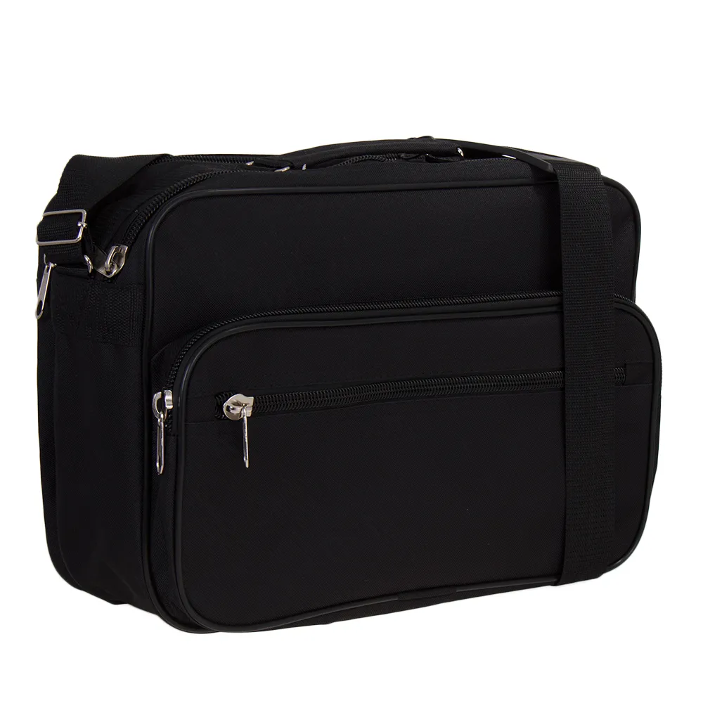 Сумка от торговой марки Rise из полиэстера черного цвета. Модель ручкой с ручкой и несъемным регулируемым плечевым ремнем с наплечником. Два отделения на молнии. На передней стороне - один объемный и один плоский карман на молнии.