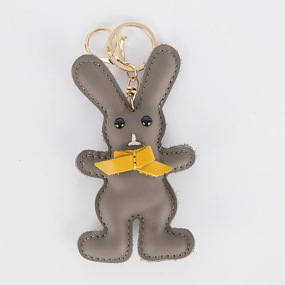 Брелок от торговой марки Poshete из натуральной кожи в виде зайчика. Оригинальная модель высотой 12 см с кольцом и карабином для крепления.