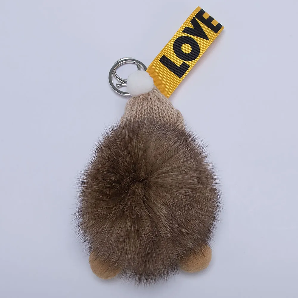 Оригинальный пушистый брелок в виде спящего малыша в шапке. Модель бежевого цвета с текстильной лямкой с надписью “Love”. Имеется цепочка с кольцом и карабином для крепления.