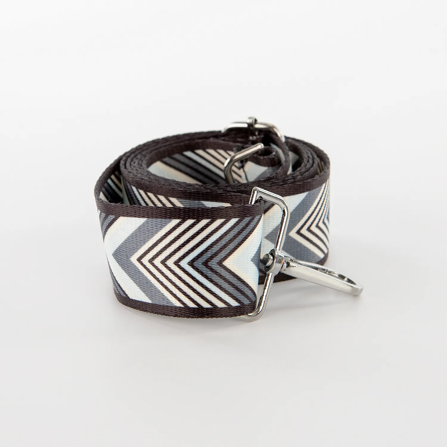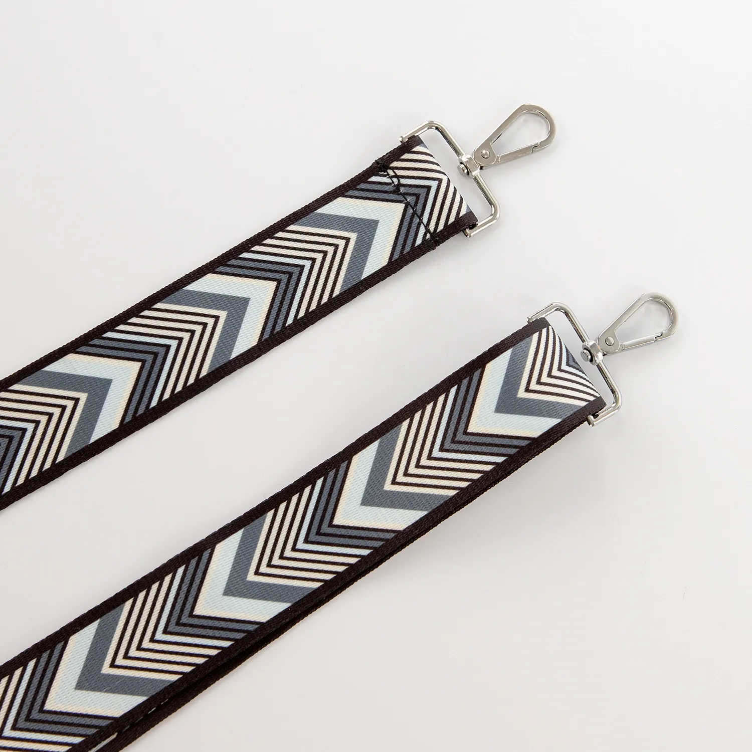 Съемный регулируемый ремень на сумку выполнен из текстильного материала яркой расцветки с оригинальным орнаментом. Модель шириной 3,7 см и длиной 140 см на карабинах. Универсальный ремень подойдет к любой сумке.
