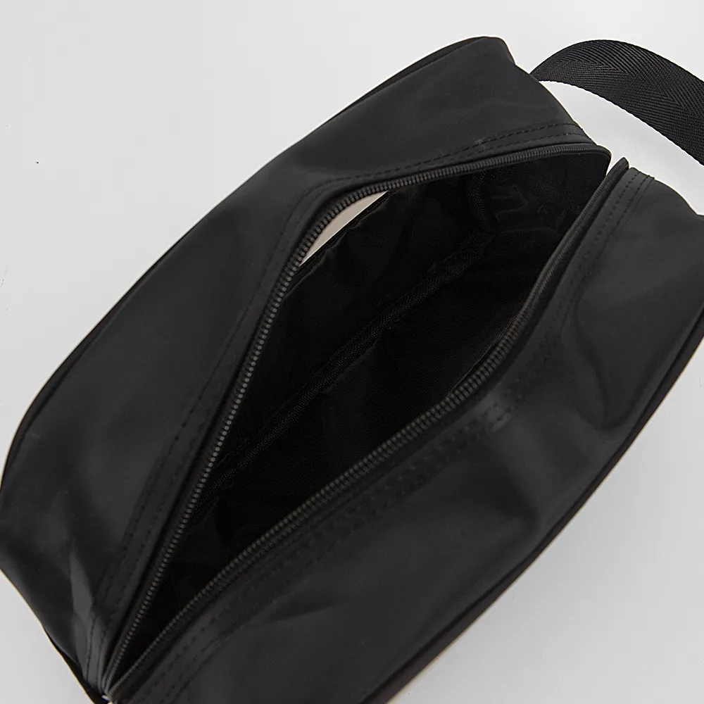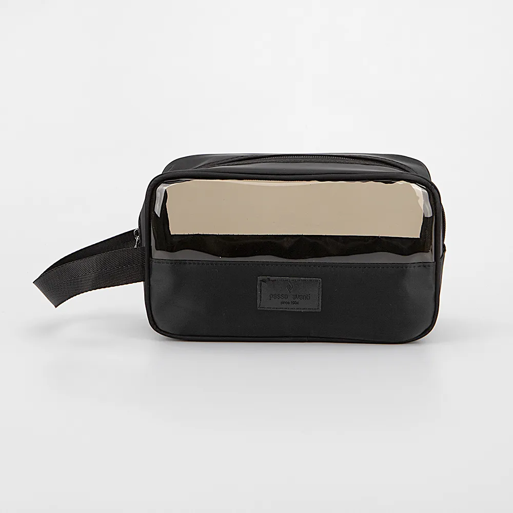 Косметичка от торговой марки Passo Avanti из текстильного материала и пластика черного цвета. Отделение на молнии. Сбоку имеется ручка-переноска.