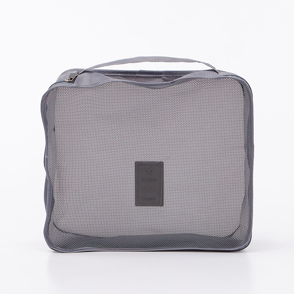 Набор дорожных косметичек из текстильного материала серого цвета. Набор состоит из шести косметичек разного размера, включая три плоские модели laundry pouch для хранения вещей. Модель с одной ручкой. Отделение на молнии. Лицевая стенка сетчатая. Набор обеспечит бережное и организованное хранение нужных вещей; аксессуар удобно использовать как дома, так и в поездках.