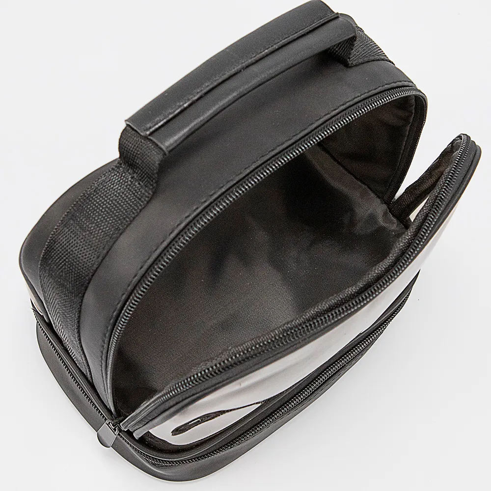 Косметичка от торговой марки Passo Avanti из практичного текстильного материала, искусственной кожи и мягкого прозрачного пластика. Модель с одной ручкой. Два отделения на молнии. В нижнем отделении имеется накладной карман-сетка.