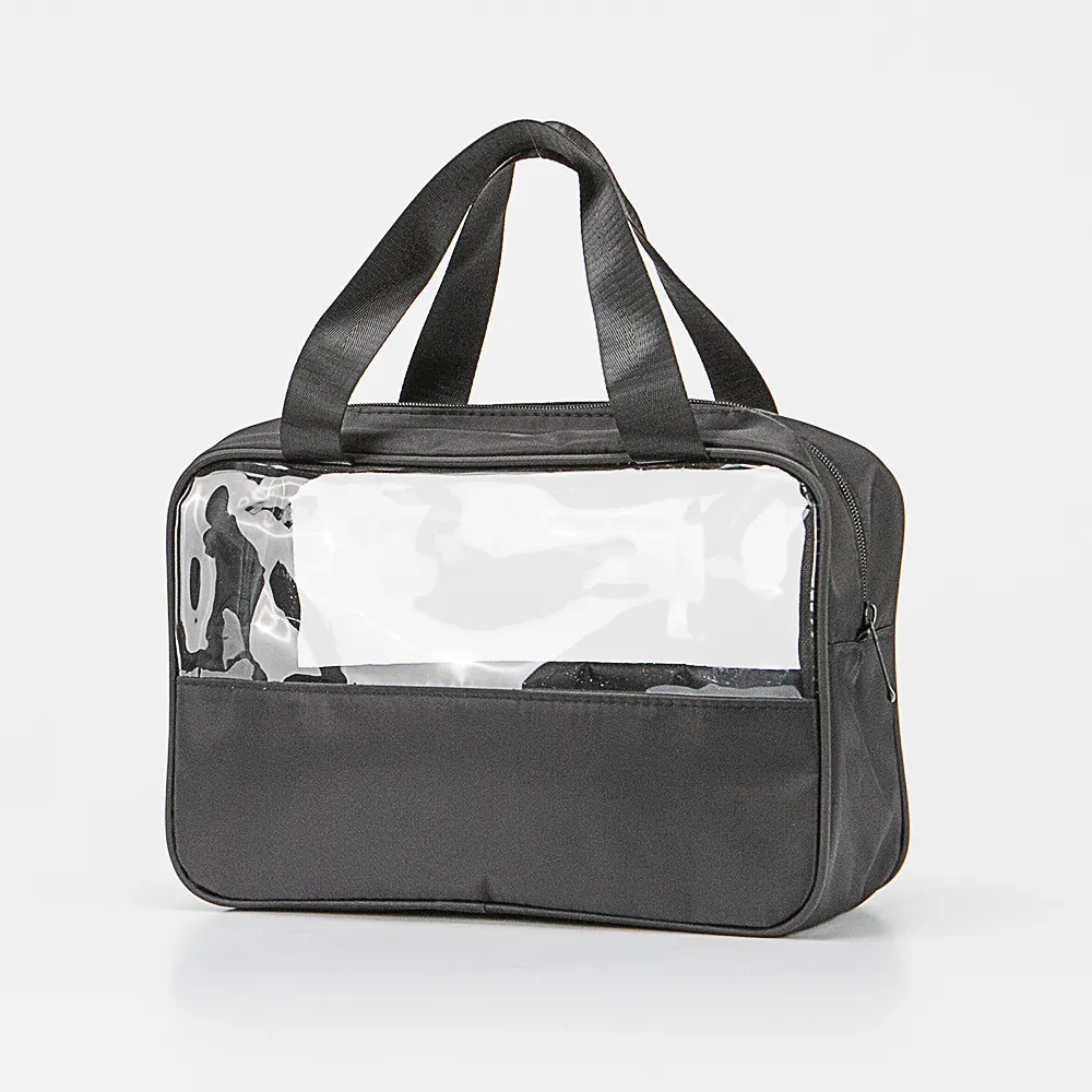 Косметичка от торговой марки Passo Avanti из практичного текстильного материала и мягкого прозрачного пластика. Модель с двумя удлиненными ручками. Отделение на молнии.