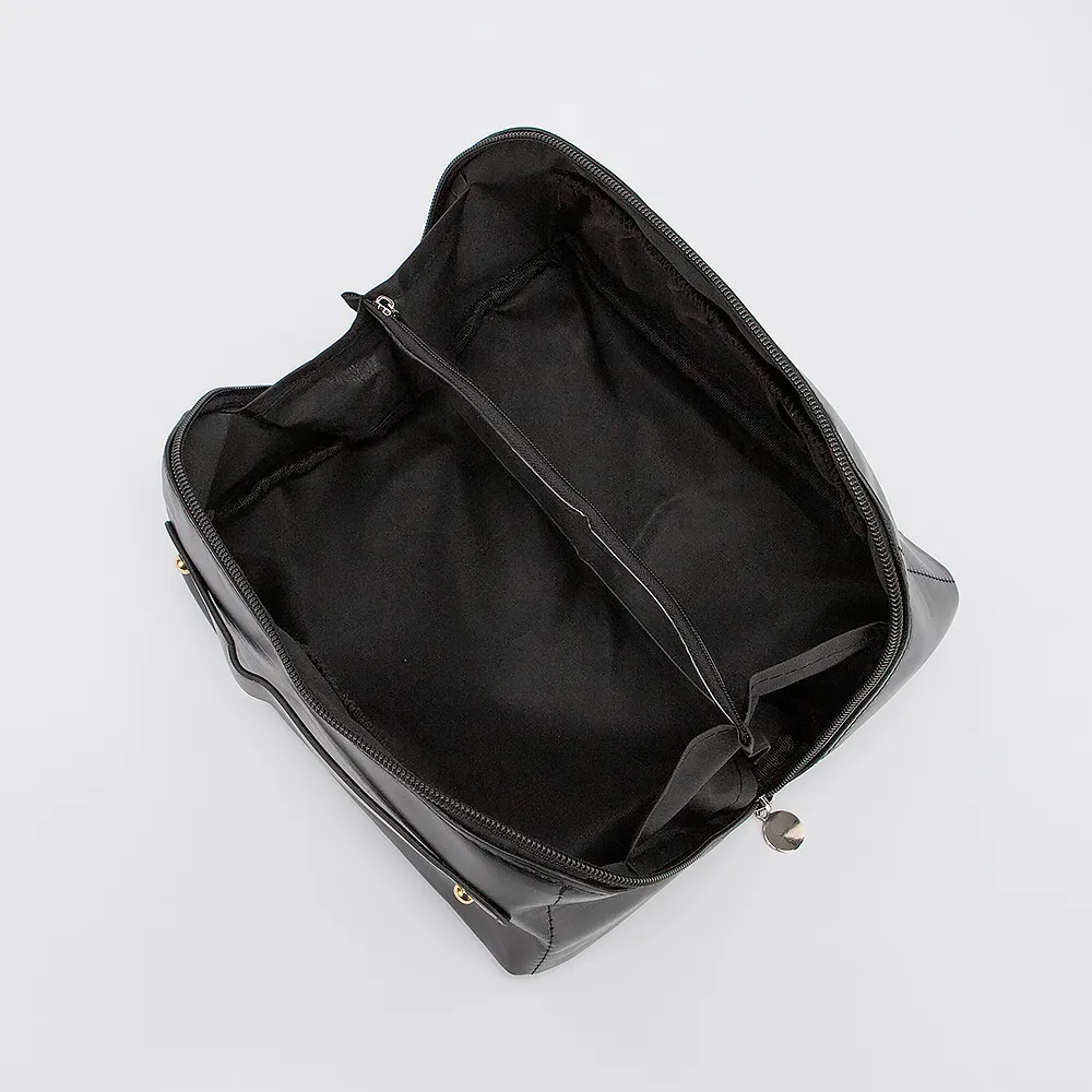 Косметичка от торговой марки Passo Avanti выполнена из искусственной кожи черного цвета. Модель в форме коробки с ручкой для переноски. Отделение закрывается клапаном на молнии. Внутри: подкладка, карман на молнии.