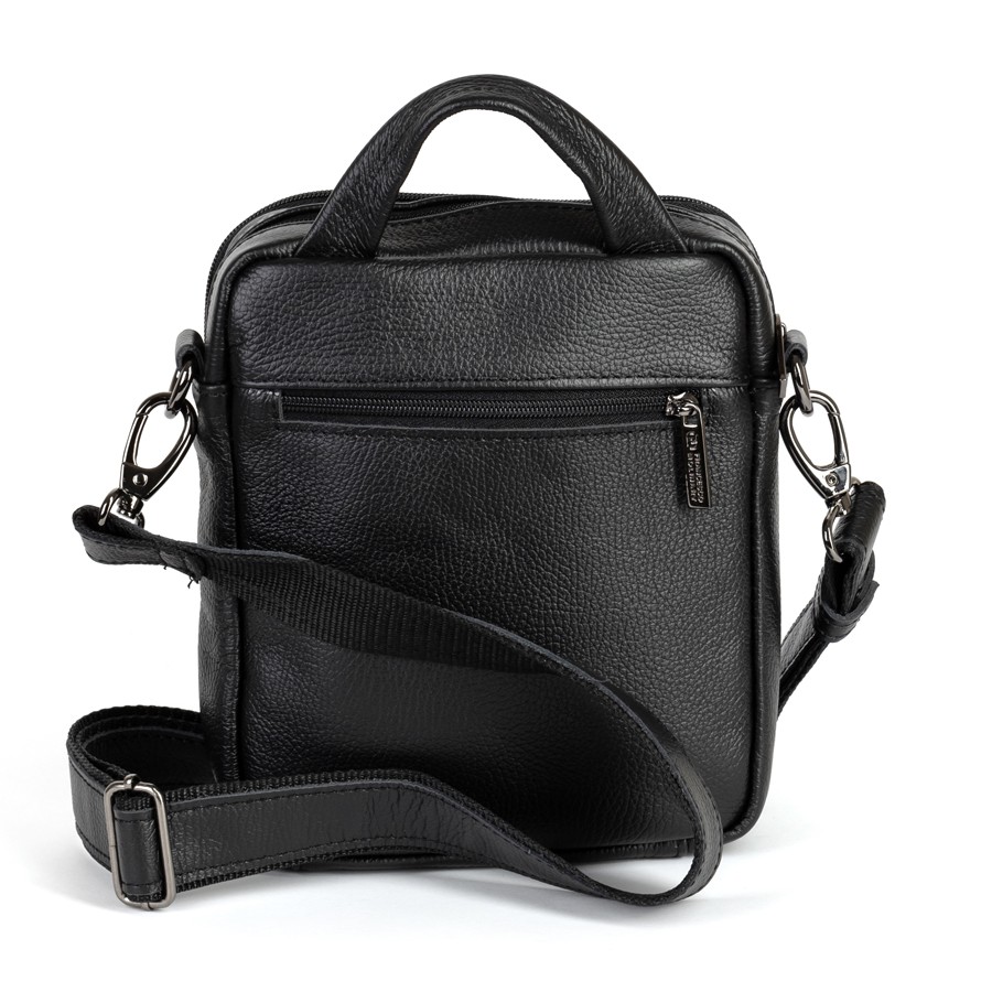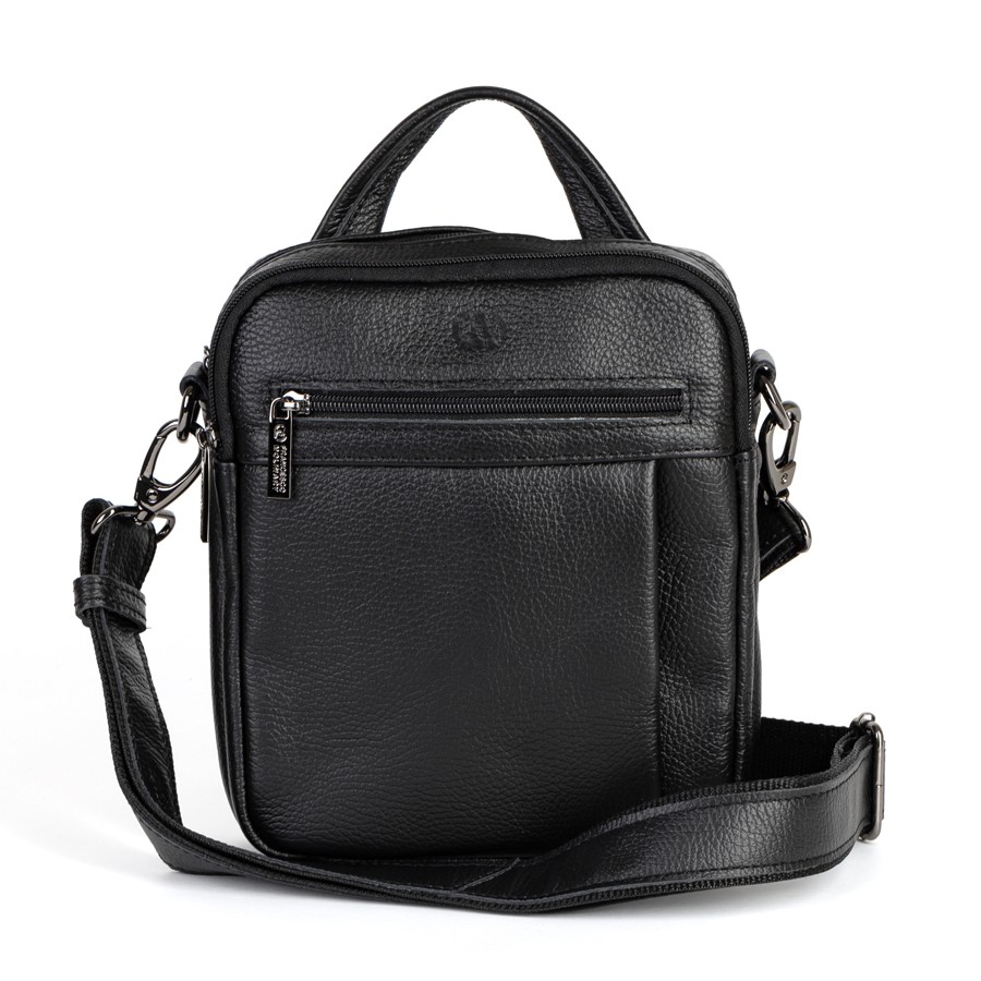Стильный мужской планшет бренда Francesco Molinary из натуральной кожи черного цвета и рельефной структуры. Модель с пришитой одной ручкой. Основное отделение на молнии, также имеет потайной карман. Внутри фирменная подкладка. Присутствуют большой карман лицевой стороне с отделениями под мелкие вещи, малый карман и карман сзади на молниях. В комплекте есть плечевой ремень