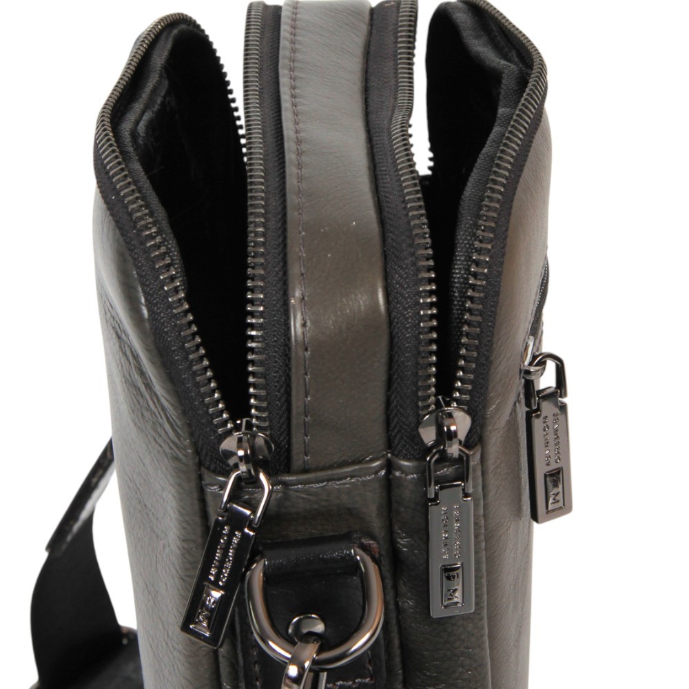 Сумка-планшет от бренда Francesco Molinary из натуральной кожи. Модель со съемным регулируемым плечевым ремнем, выполненным из текстильного материала. Два отделения на молнии, с текстильной подкладкой. В заднем отделении – карман на молнии, в переднем – накладной карман. На лицевой и задней сторонах – карман на молнии.