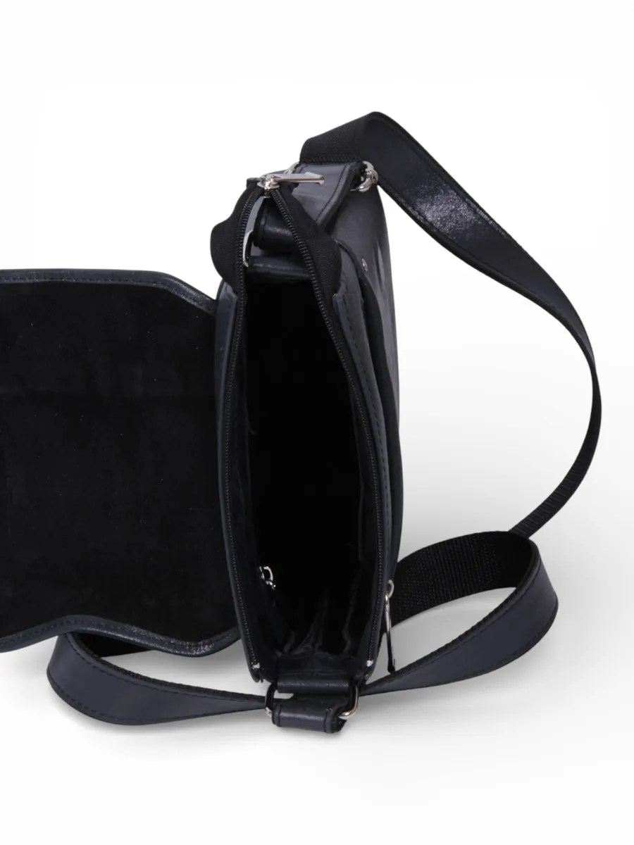 Сумка-планшет от бренда Francesco Molinary выполнена из натуральной кожи в темно-синем цвете. Модель с несъемным регулируемым плечевым ремнем. Основное отделение закрывается клапаном на магнитных кнопках, под которым расположена молния, внутри: фирменная текстильная подкладка, накладной карман и карман на молнии. На лицевой стороне под клапаном расположен карман на молнии и открытый карман, на задней стороне расположен карман быстрого доступа на молнии.