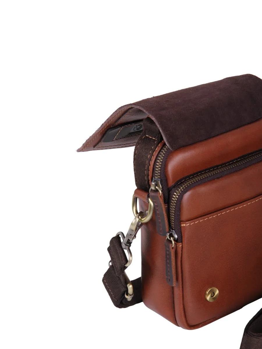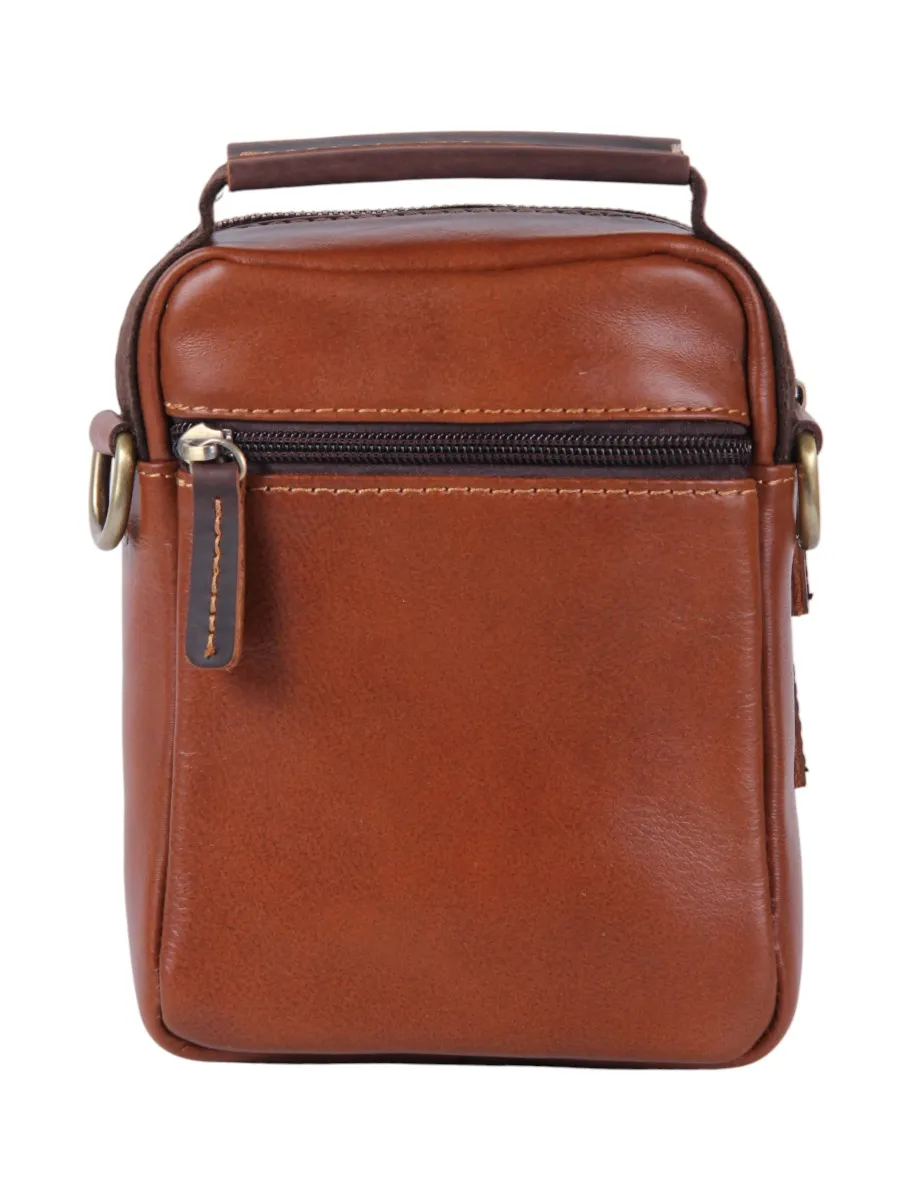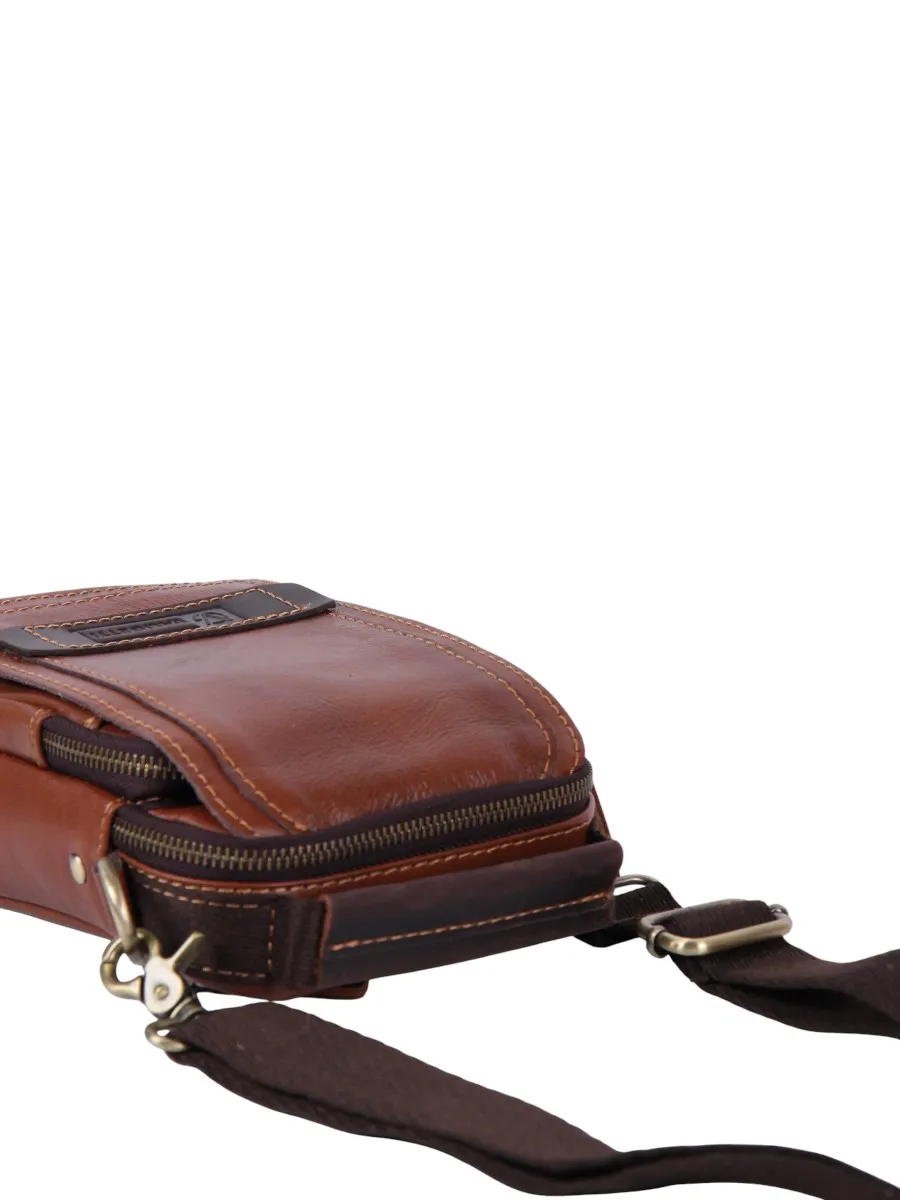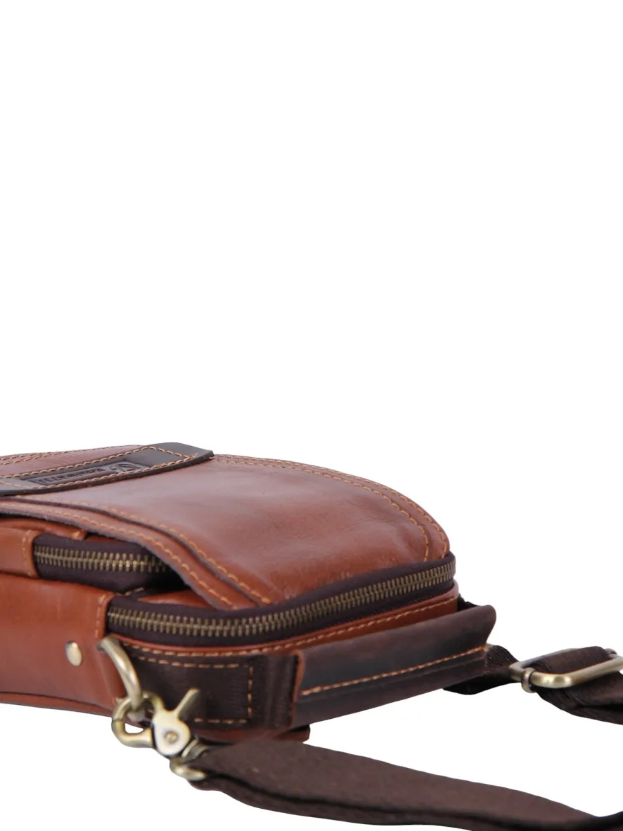 Винтажная мужская сумка через плечо, небольшого размера, на каждый день от бренда Valigetti с отличным качеством отделки, эффектом потёртости и золотистой металлической фурнитурой, выполнена из натуральной кожи. Хорошо подходит для вещей, которые всегда нужны под рукой: телефон, кошелёк и автодокументы. Сумка коричневого цвета, в комплекте предусмотрен мешковидный ремень, который регулируется по длине. Снаружи под клапаном два кармана: накладной открытый и на молнии. Основное отделение на молнии, внутри: текстильная подкладка и карман на молнии. На задней стороне сумки расположен карман на молнии.