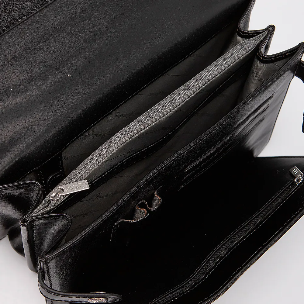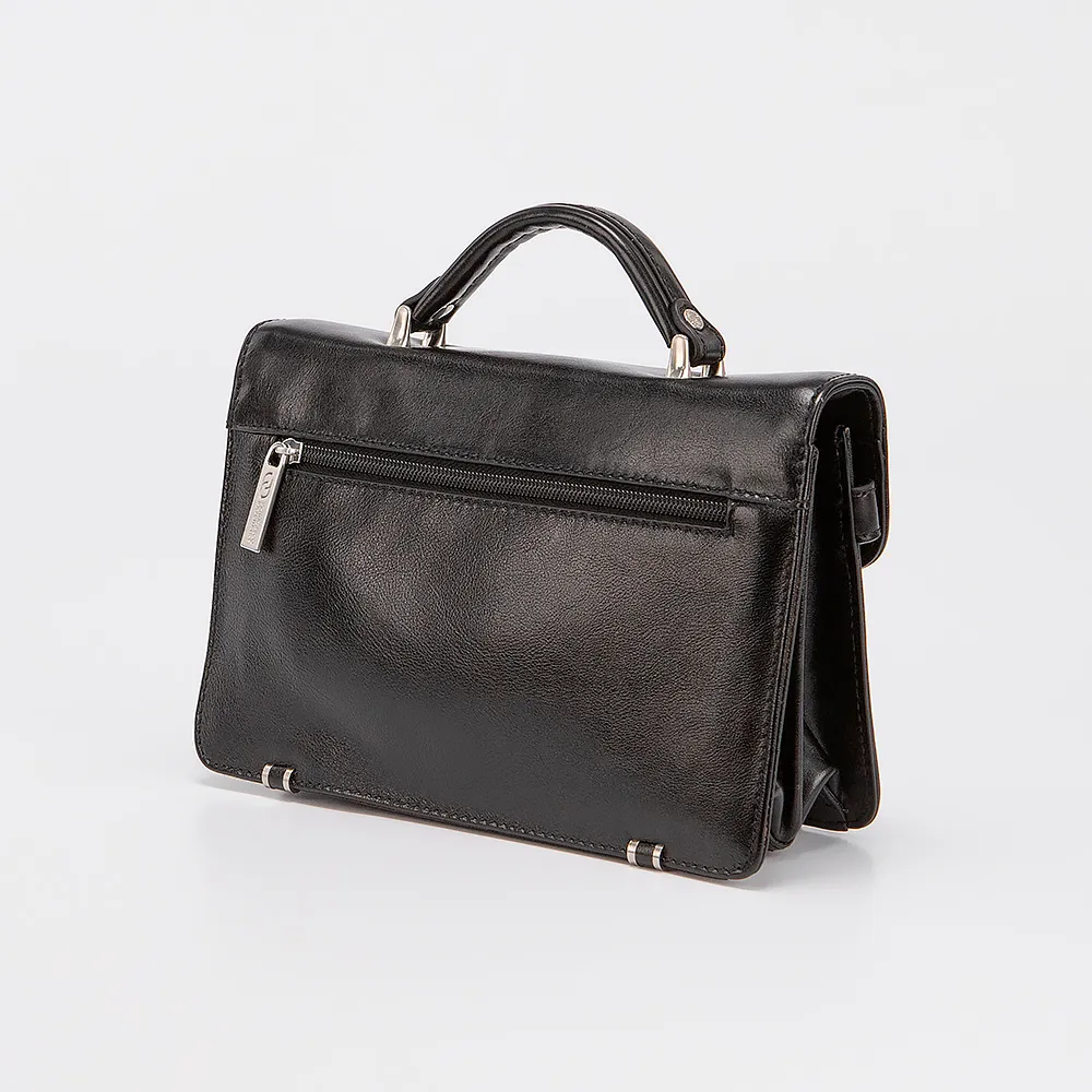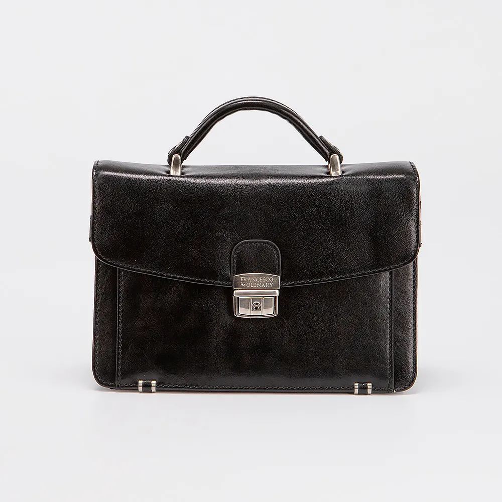 Классическая мужская барсетка Francesco Molinary из натуральной мягкой кожи. Внутри два отдела и средник на молнии, закрывается на клапан с железным замком - щеколдой. Внутри карман на кнопке, карман на молнии и карман под мелочи. Сзади с внешней стороны карман на молнии.