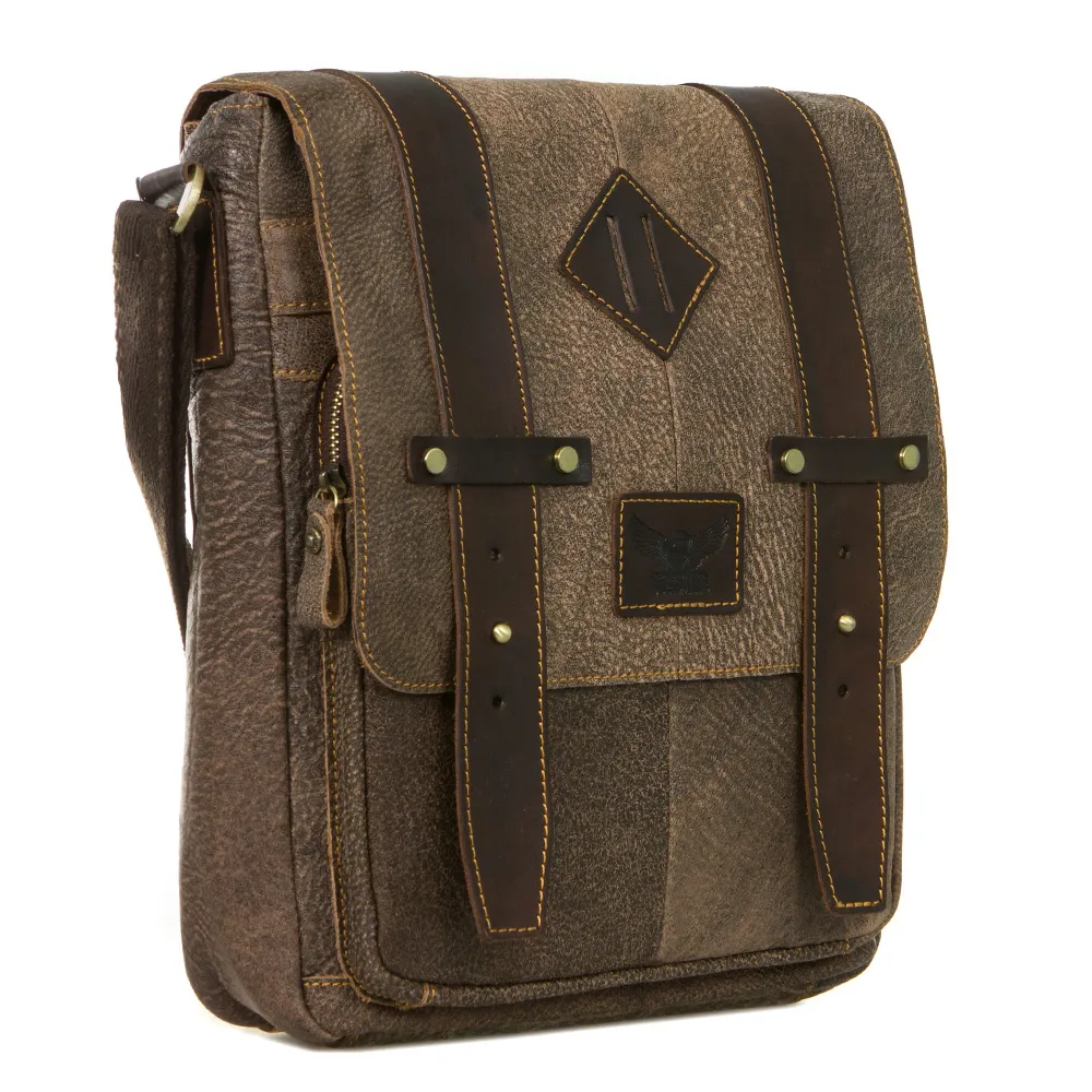 Мужской планшет из натуральной кожи от бренда Poshete. Выполнен в стиле кэжуал. С лицевой стороны декорирован двумя симметричными нашивками в виде ремня. Планшет глубокий, поэтому вмещает в себя большое количество нужных вещей. Мягкий клапан закрывается на две кнопки, под ним - основное отделение на застежке-молнии. Внутри сумка разделена на три отделения тканевыми средниками, закрывающимися между собой на кнопку. Есть два накладных кармашка для мелких вещей и один прорезной на молнии. На задней стороне карман на молнии. Носится через плечо на регулируемом тканевом ремне.