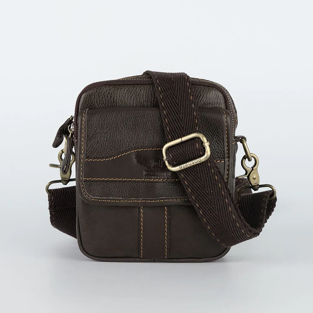 Компактная повседневная сумка-планшет из натуральной кожи от бренда Poshete. Клапан на лицевой стороне, под которым просторный карма н, украшен кожаной фигурной брендированной нашивкой. У сумки два основных отделения, закрывающихся на молнии. Для мелких ценных вещей на задней стороне аксессуара еще один прорезной карман на молнии. Регулируемый плечевой ремень из мягкой ткани пристегивается на карабинах. Цвет аксессуара - насыщенно-коричневый.