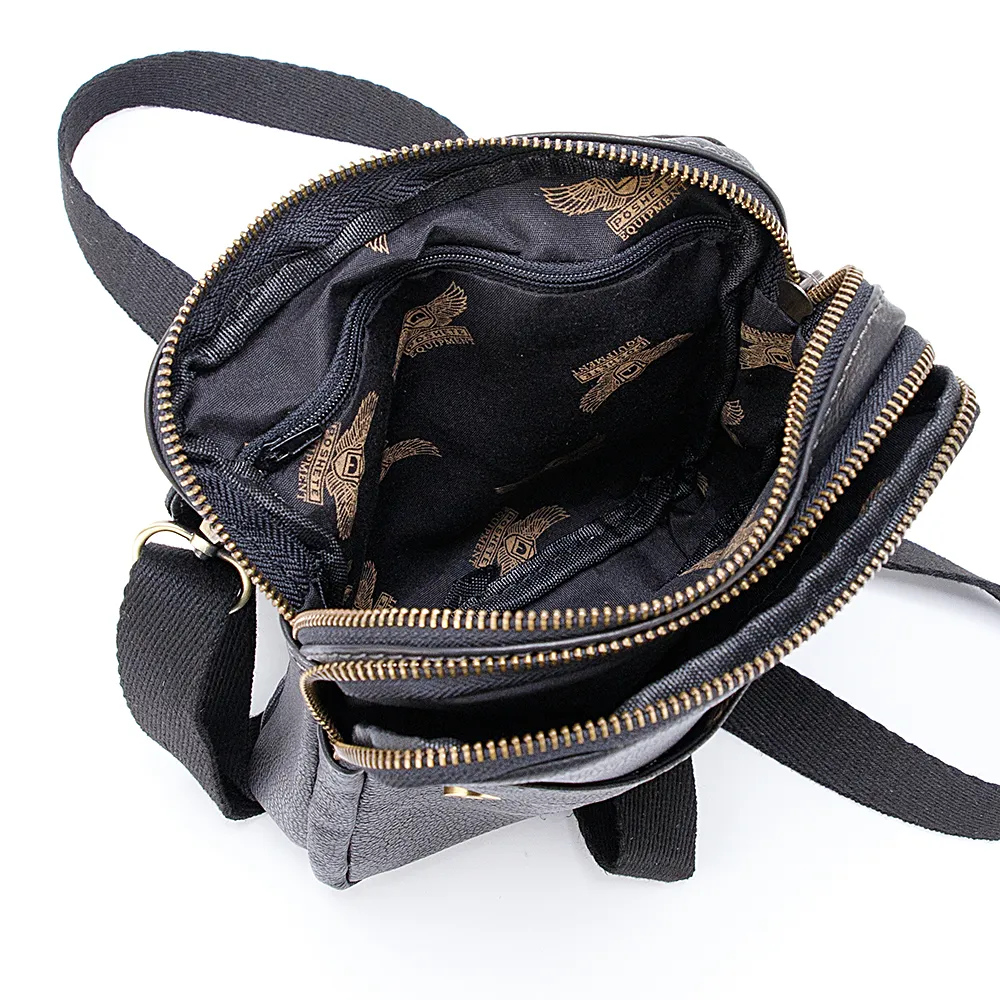 Сумка кросс-боди от торговой марки Poshete из натуральной кожи черного цвета. Модель со съемным регулируемым плечевым ремнем. Клапан на двух магнитных кнопках закрывает накладной карман и два отделения на молнии. Внутри: фирменная подкладка, в одном из отделений – карман на молнии. На клапане – карман на молнии. На задней стороне – шлевки для ношения на ремне.