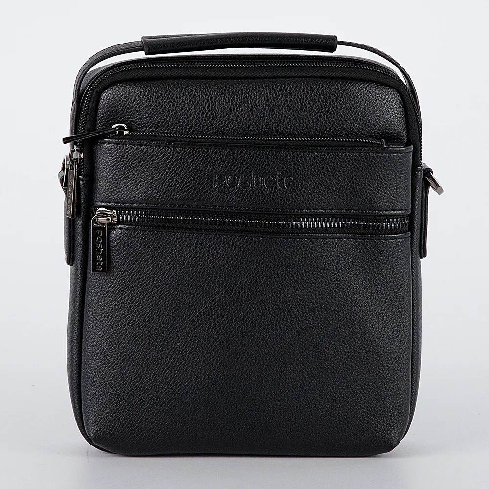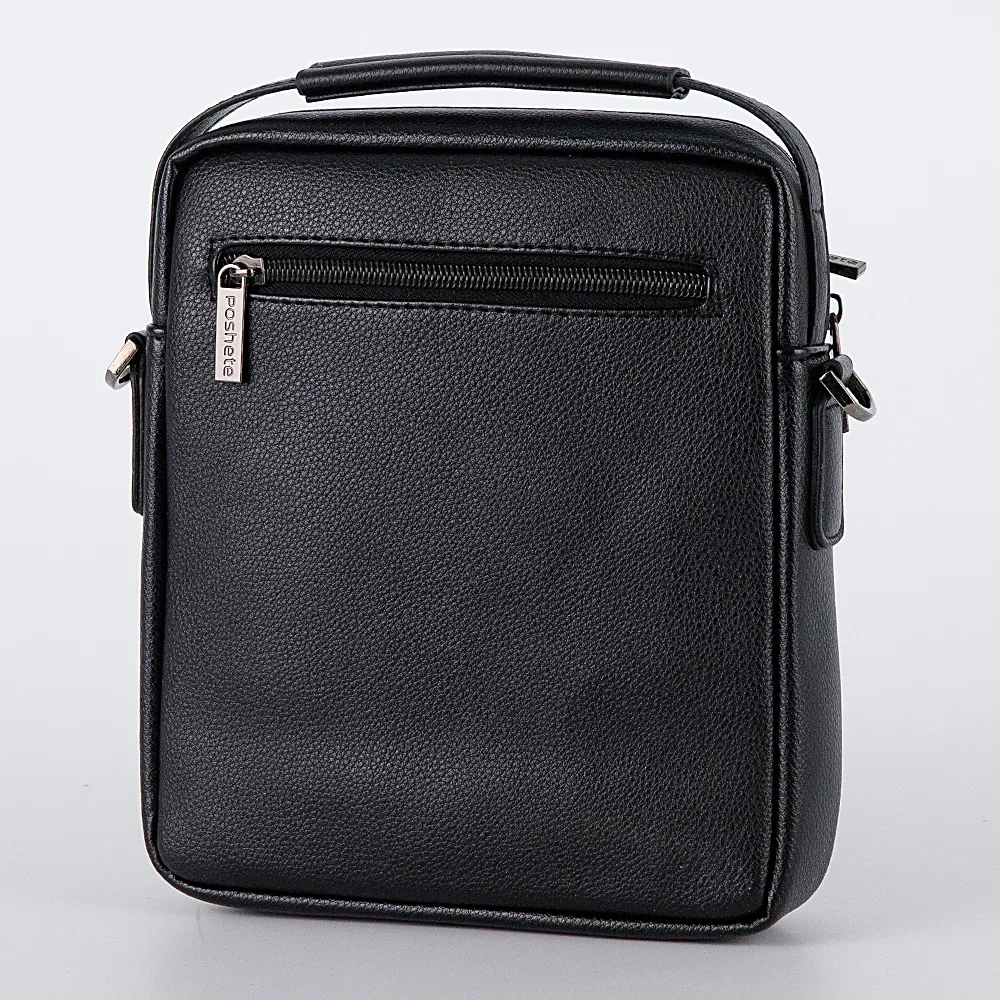 Небольшая мужская сумка на каждый день от бренда Poshete выполнена из мягкой искусственной кожи, с отличным качеством отделки. Сумка чёрного цвета, на съёмном текстильном ремне, который регулируется по длине. Оснащена эргономичной ручкой, которая повторяет мягкий контур сумки. Сзади прорезной карман на молнии, спереди два накладных на молниях. Основное отделение на молнии, внутри два дополнительных кармана. Самые необходимые вещи всегда будут под рукой, подходит для ipad mini.