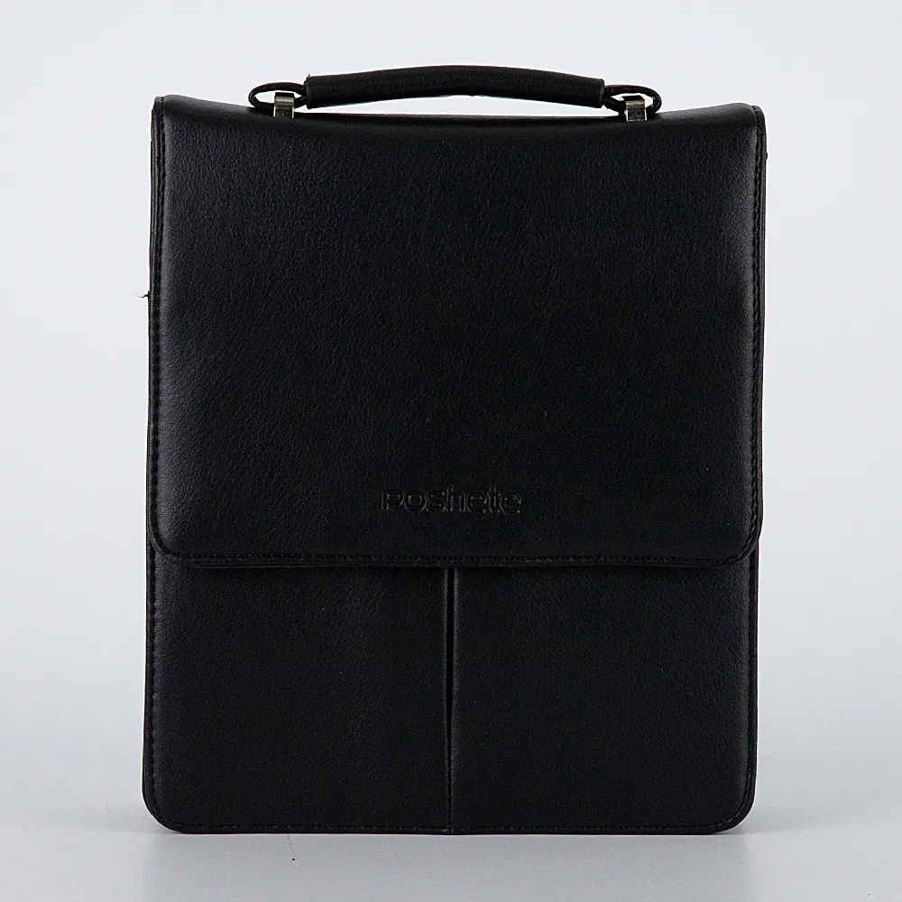 Повседневный мужской планшет от бренда Poshete выполнен из мягкой искусственной кожи, с отличным качеством отделки и металлической фурнитурой. Модель чёрного цвета, по размеру подойдёт для небольшого планшета, с эргономичной ручкой и съёмным текстильным ремнём, который регулируется по длине. Сзади прорезной карман на молнии, спереди клапан на магните, под ним накладной карман без застёжки и молния основного отделения, внутри два отсека и два дополнительных кармашка. Самые необходимые вещи всегда будут под рукой.